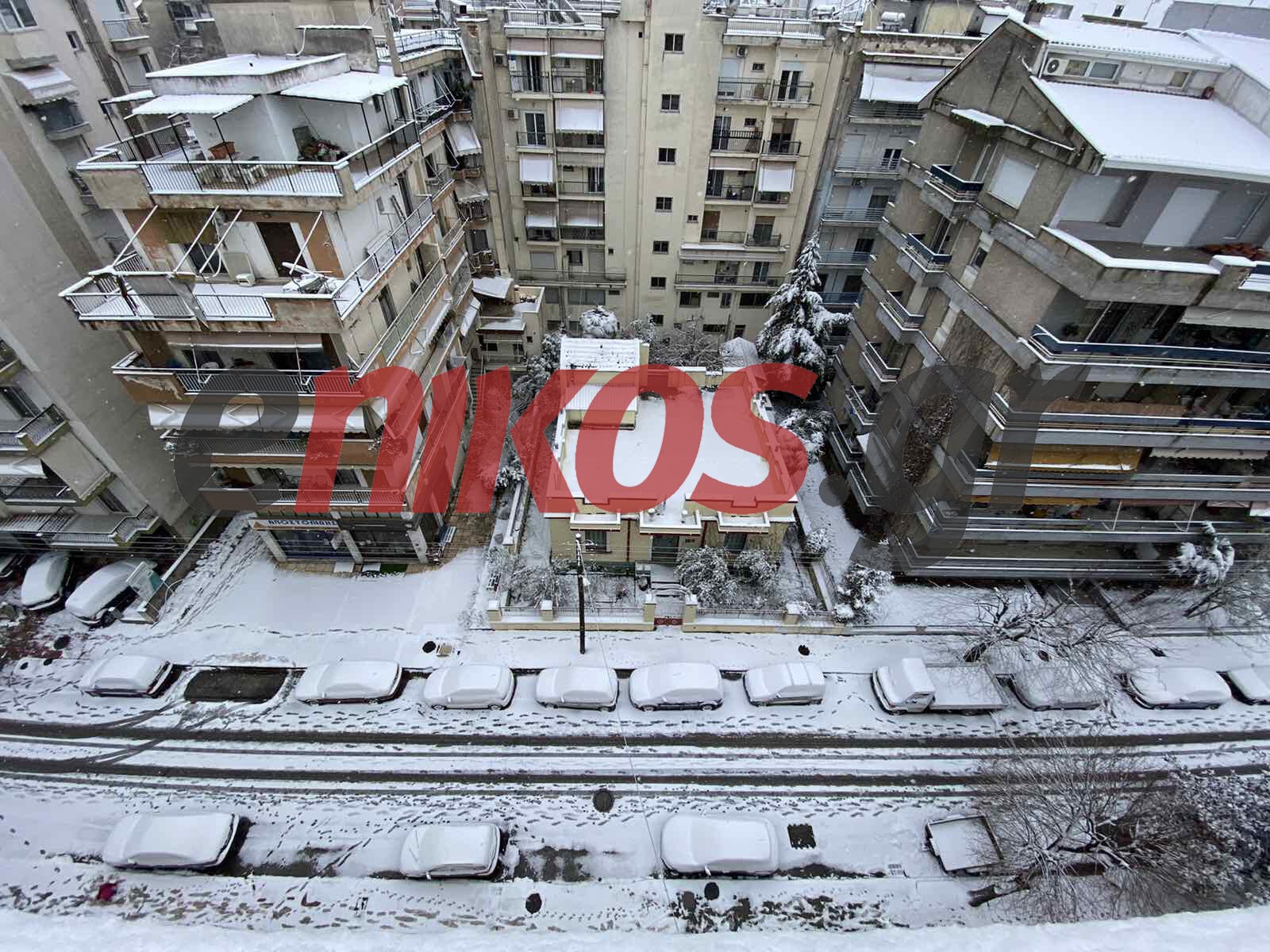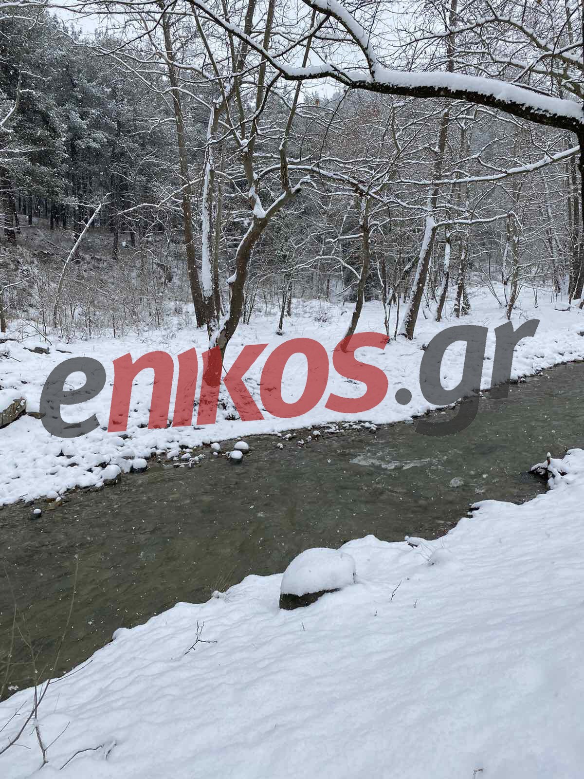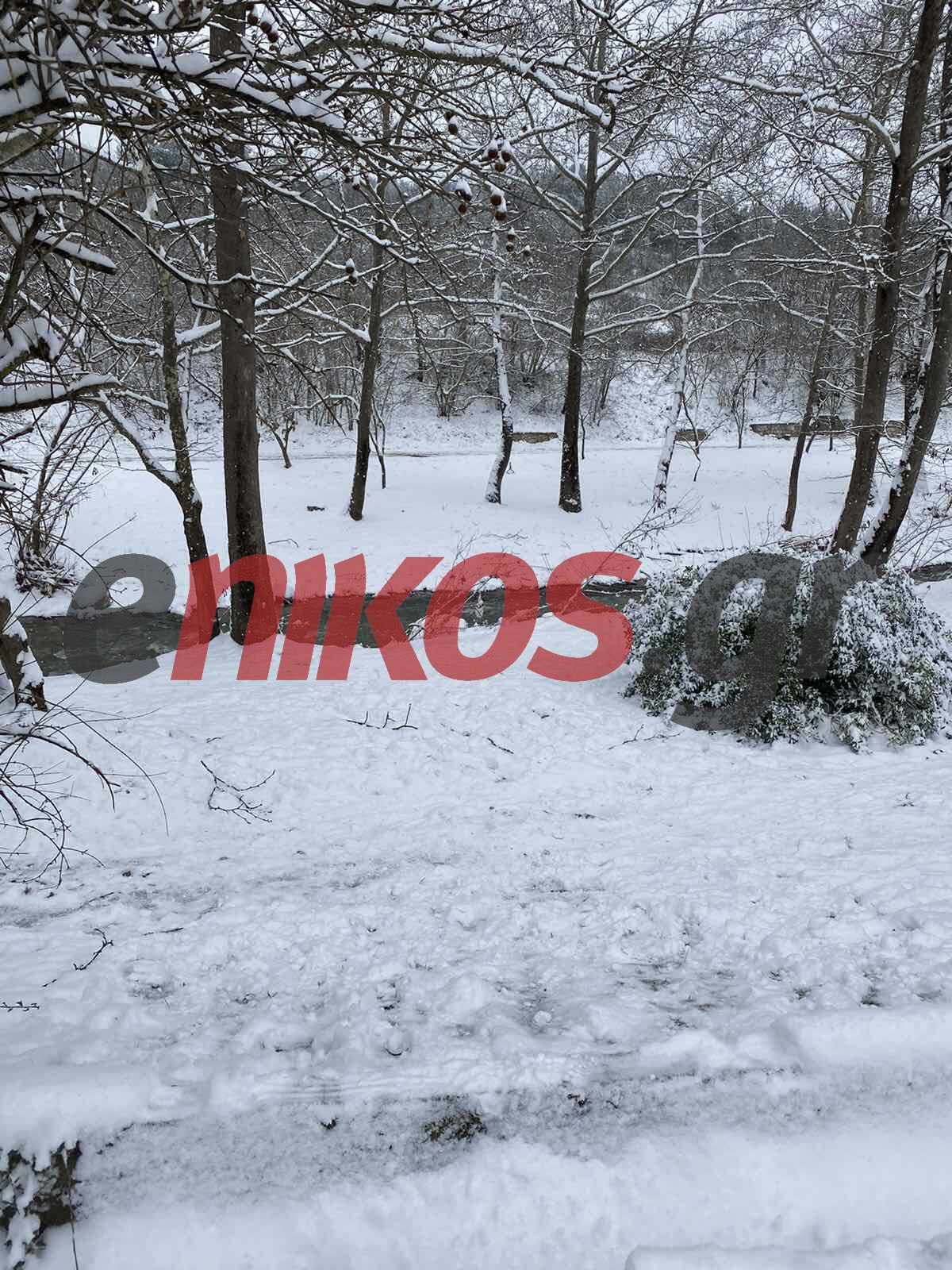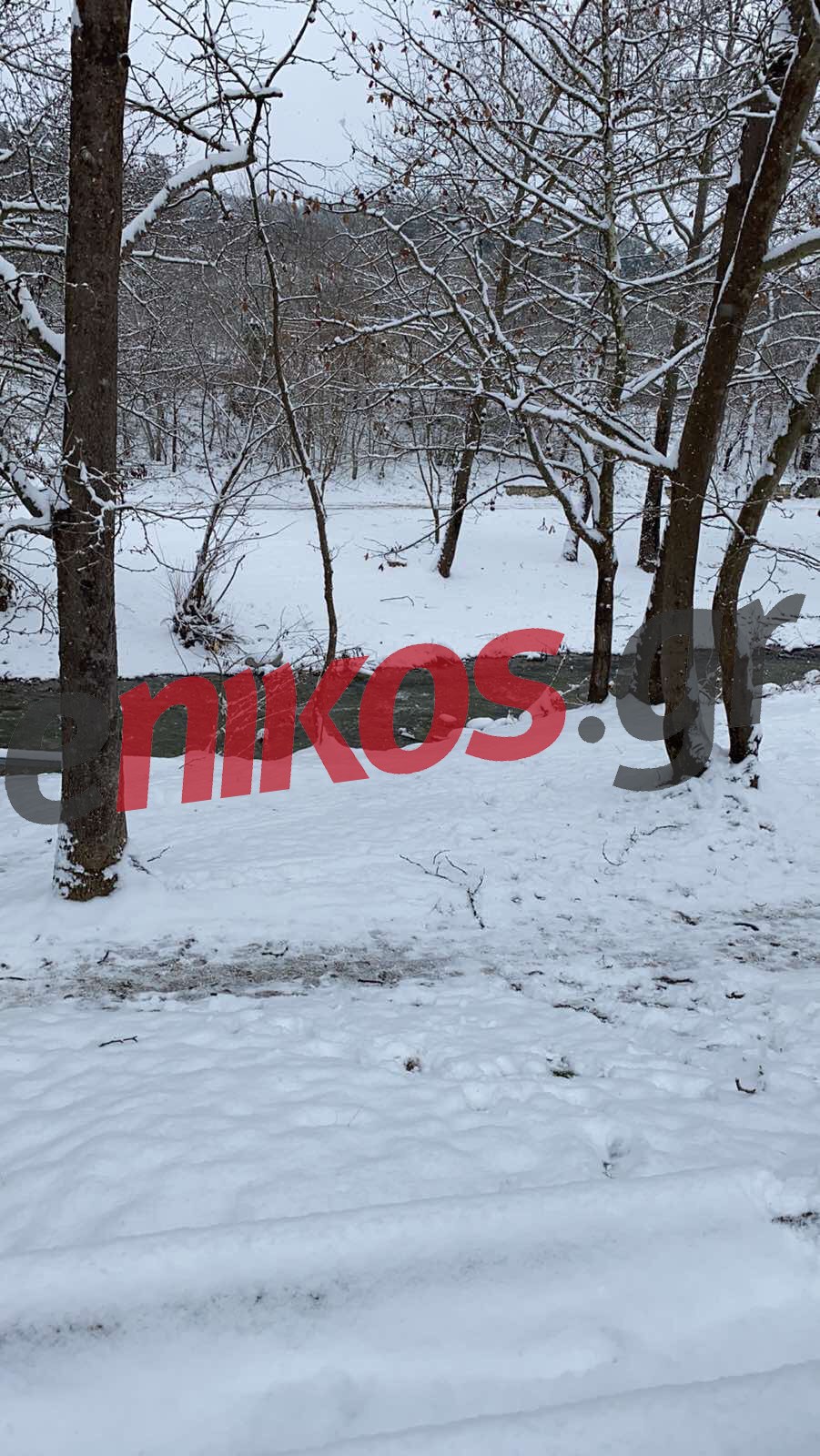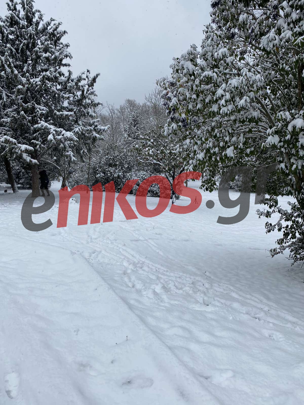 Οι δρόμοι, τα κτίρια, τα αυτοκίνητα είναι σκεπασμένα με χιόνι όπως φαίνεται σε φωτογραφίες που έστειλε αναγνώστης του enikos.gr.