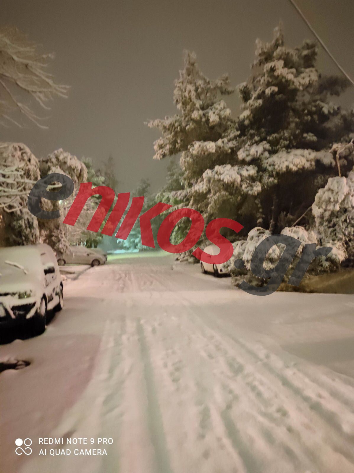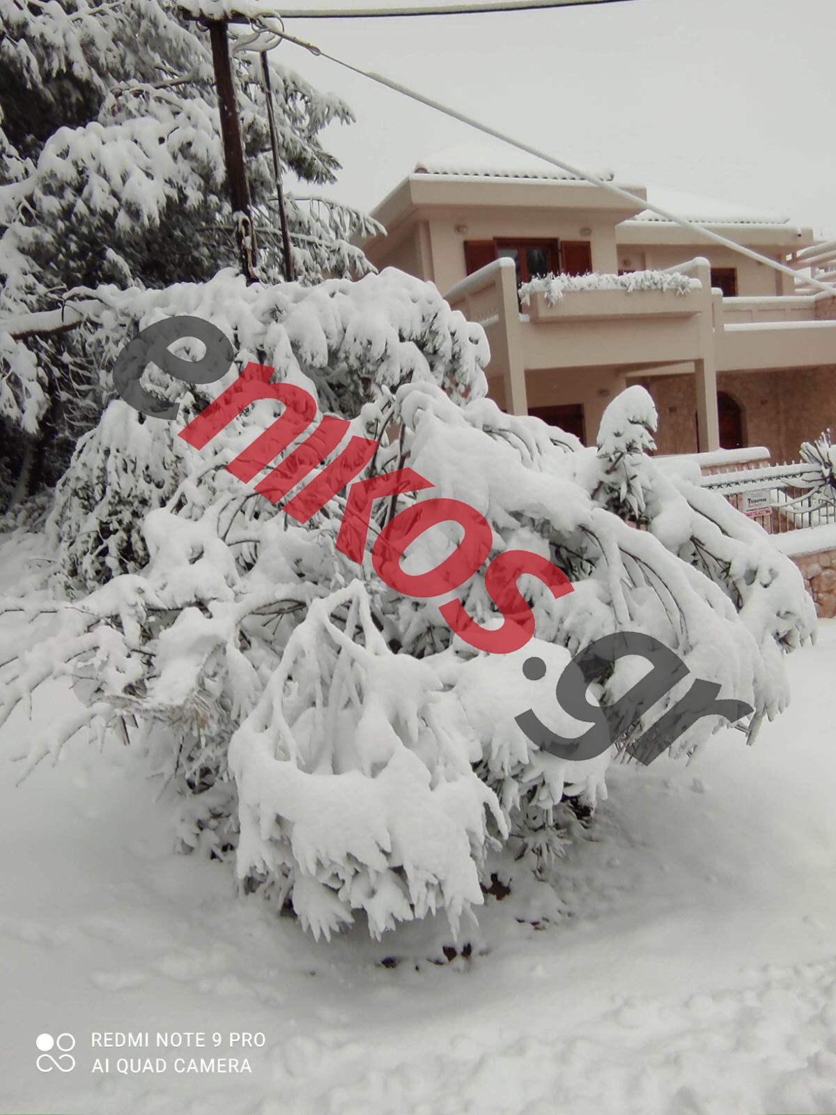Λευκό το τοπίο σήμερα στα ορεινά της Αττικής, με το χιόνι να ξεπερνά του 20-30 πόντους. Αρκετοί κάτοικοι είναι αποκλεισμένοι στα σπίτια τους, καθώς οι μεγάλες ποσότητες χιονιού έχουν κάνει απροσπέλαστους πολλούς δρόμους. Η Λεωφόρος Διονύσου είναι κλειστή από το ύψος του Γηπέδου Διονύσου, μέχρι το Πάρκο Ανατολής και στα δύο ρεύματα κυκλοφορίας. Σύμφωνα με τον ΔΕΔΔΗΕ, υπάρχουν προβλήματα ηλεκτροδότησης σε Εκάλη, Δροσιά, Αγ. Στέφανο, Ροδόπολη, Σταμάτα, Μαρκόπουλο Ωρωπού, Καπανδρίτι, Αυλώνα και Κάλαμο.