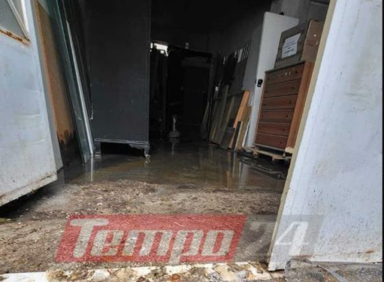 Οι ιδιοκτήτες προσπαθούν να σώσουν ό,τι μπορούν. Όπως περιγράφουν στο tempo24, ένα φρεάτιο έχει βουλώσει με αποτέλεσμα όλα τα νερά από τις βροχές να μπουν στην επιχείρησή τους προκαλώντας τεράστια ζημιά.