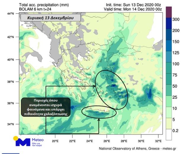 Ισχυρές βροχές καταγράφηκαν έως τις πρωινές ώρες σήμερα από το δίκτυο των αυτόματων μετεωρολογικών σταθμών του Εθνικού Αστεροσκοπείου Αθηνών/meteo.gr. Τα μεγαλύτερα ύψη βροχής καταγράφηκαν στο Φουρφουρά Ρεθύμνου (73 χιλιοστά), στη Μεγίστη Λαύρα (46), στη Γλώσσα Σκοπέλου (38) και στη Λήμνο και Χίο (36 χιλιοστά και στις δύο).
