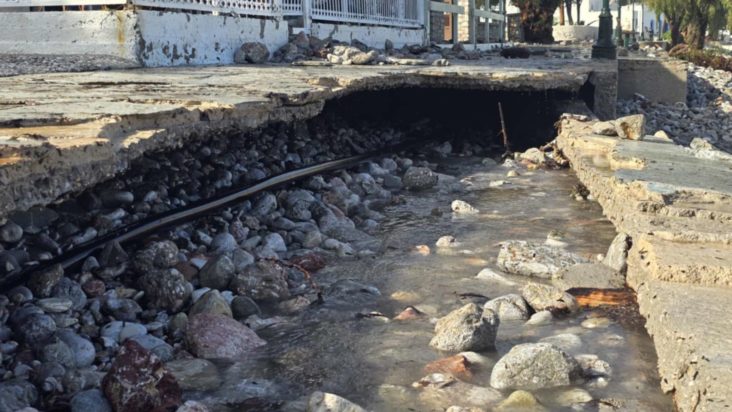 Σύμφωνα με την ανακοίνωση, το αίτημα αφορούσε τις εκτεταμένες φθορές που σημειώθηκαν σε διάφορα σημεία του νησιού, με πιο σοβαρές εκείνες στο παραλιακό μέτωπο της περιοχής Λιβάδια, όπου ο πεζόδρομος έχει υποστεί σημαντικές ζημιές, θέτοντας σε κίνδυνο την ασφάλεια κατοίκων και επισκεπτών.