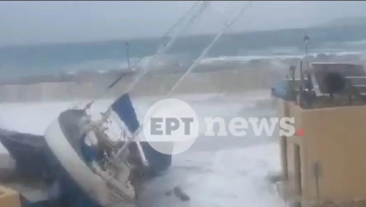 Σε βίντεο που εξασφάλισε το ΕΡΤnews αποτυπώνεται καρέ – καρέ η πρωτοφανής δύναμη των κυμάτων που «σηκώνουν» ένα ιστιοπλοϊκό 15 μέτρων, το οποίο βρίσκεται στον προβλήτα δεμένο, στο λιμάνι της Γαύδου.