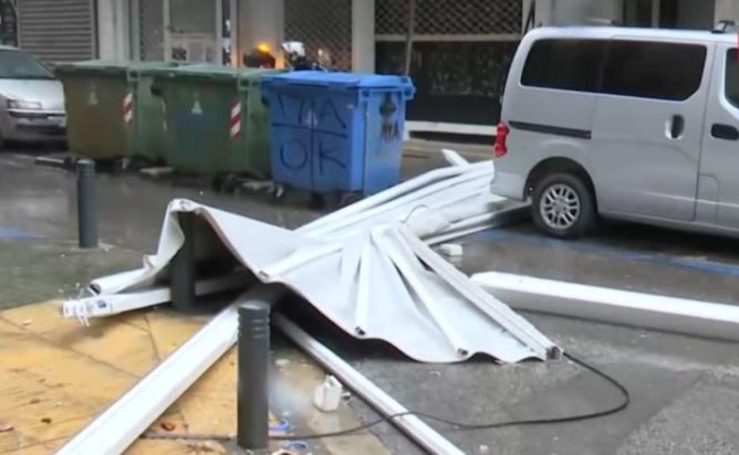 Χαρακτηριστική είναι η περίπτωση μιας τεράστιας τέντας στο κέντρο της Θεσσαλονίκης, η οποία ξηλώθηκε από ταράτσα πολυκατοικίας, στην κυριολεξία «απογειώθηκε» και «προσγειώθηκε» στη μέση δρόμου, προκαλώντας φθορές σε δύο οχήματα, ενώ από καθαρή τύχη δεν υπάρχει μέχρι στιγμής πληροφόρηση για κάποιο τραυματισμό ατόμου, όπως μετέδωσε η ΕΡΤ.