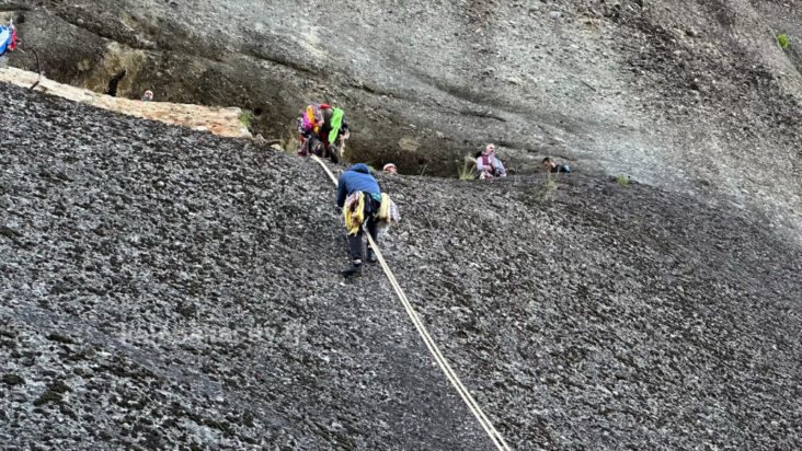 Εκατοντάδες πιστοί συγκεντρώθηκαν για να παρακολουθήσουν από κοντά την τελετουργική διαδικασία, όπως αναφέρει το kalabakacity.gr. Νέοι και έμπειροι αναρριχητές από την περιοχή αλλά και από άλλα μέρη της Ελλάδας σκαρφάλωσαν στον επιβλητικό βράχο, συνεχίζοντας την παράδοση αιώνων. Οι πρώτοι αναρριχητές έστησαν τα σκοινιά και άνοιξαν τον δρόμο για τους επόμενους, οι οποίοι ανέλαβαν το έργο της ανάρτησης και κατεβάσματος των πολύχρωμων μαντηλιών.