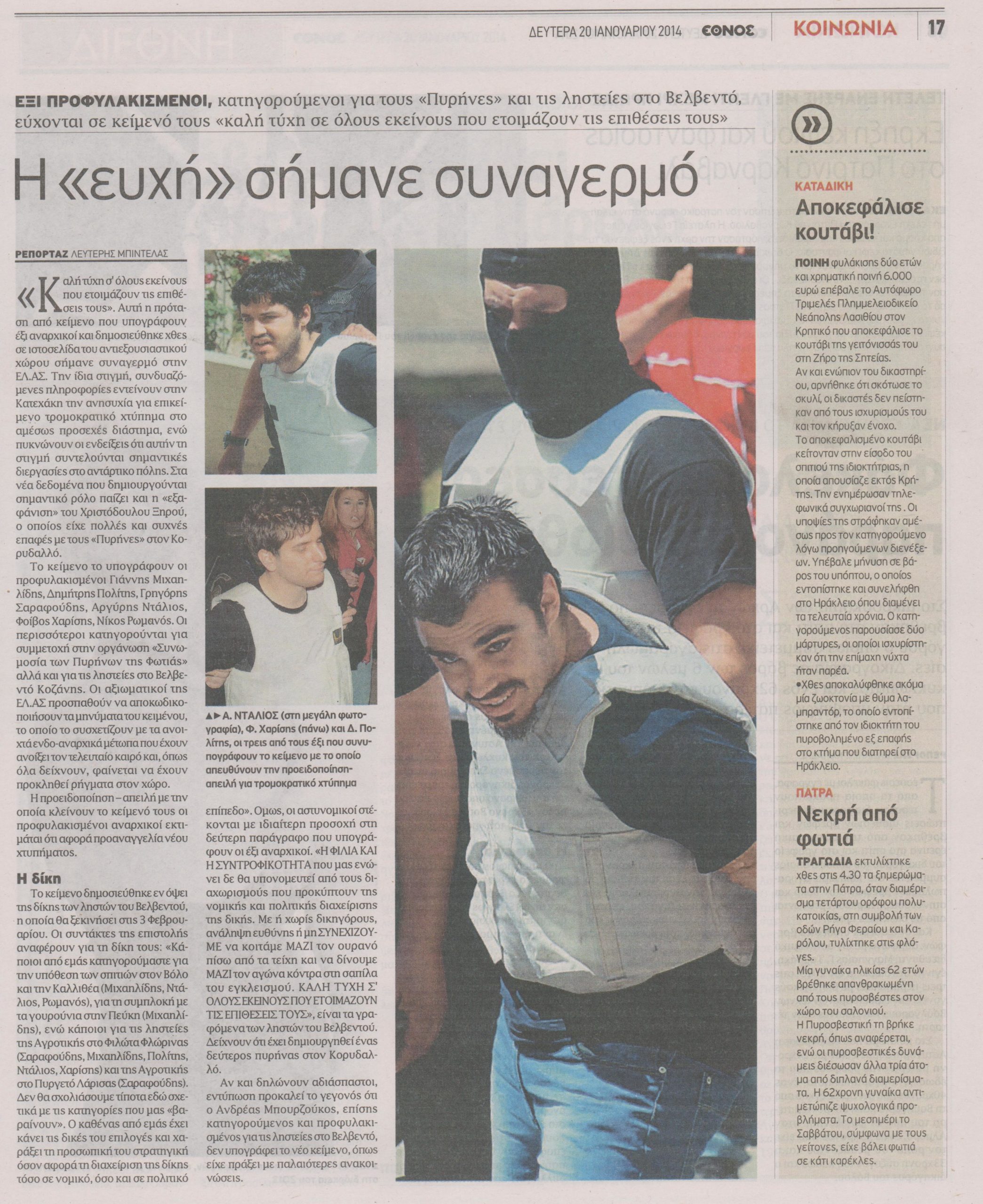 Το κείμενο δημοσιεύθηκε εν όψει της δίκης των ληστών του Βελβεντού, η οποία θα ξεκινήσει στις 3 Φεβρουαρίου. Οι συντάκτες της επιστολής αναφέρουν για τη δίκη τους: «Κάποιοι από εμάς κατηγορούμαστε για την υπόθεση των σπιτιών στον Βόλο και την Καλλιθέα (Μιχαηλίδης, Ντάλιος, Ρωμανός), για τη συμπλοκή με τα γουρούνια στην Πεύκη (Μιχαηλίδης), ενώ κάποιοι για τις ληστείες της Αγροτικής στο Φιλώτα Φλώρινας (Σαραφούδης, Μιχαηλίδης, Πολίτης, Ντάλιος, Χαρίσης) και της Αγροτικής στο Πυργετό Λάρισας (Σαραφούδης). Δεν θα σχολιάσουμε τίποτα εδώ σχετικά με τις κατηγορίες που μας «βαραίνουν». Ο καθένας από εμάς έχει κάνει τις δικές του επιλογές και χαράξει τη προσωπική του στρατηγική όσον αφορά τη διαχείριση της δίκης τόσο σε νομικό, όσο και σε πολιτικό επίπεδο».
