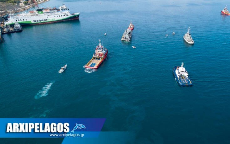 Οι πανοραμικές εικόνες από τη ρυμούλκηση του πλοίου του Πολεμικού Ναυτικού στον Ναύσταθμο της Σαλαμίνας δείχνουν την πραγματική έκταση των ζημιών. Η πρύμνη του ναρκαλιευτικού «Καλλιστώ» έχει αποκοπεί σχεδόν ολόκληρη.