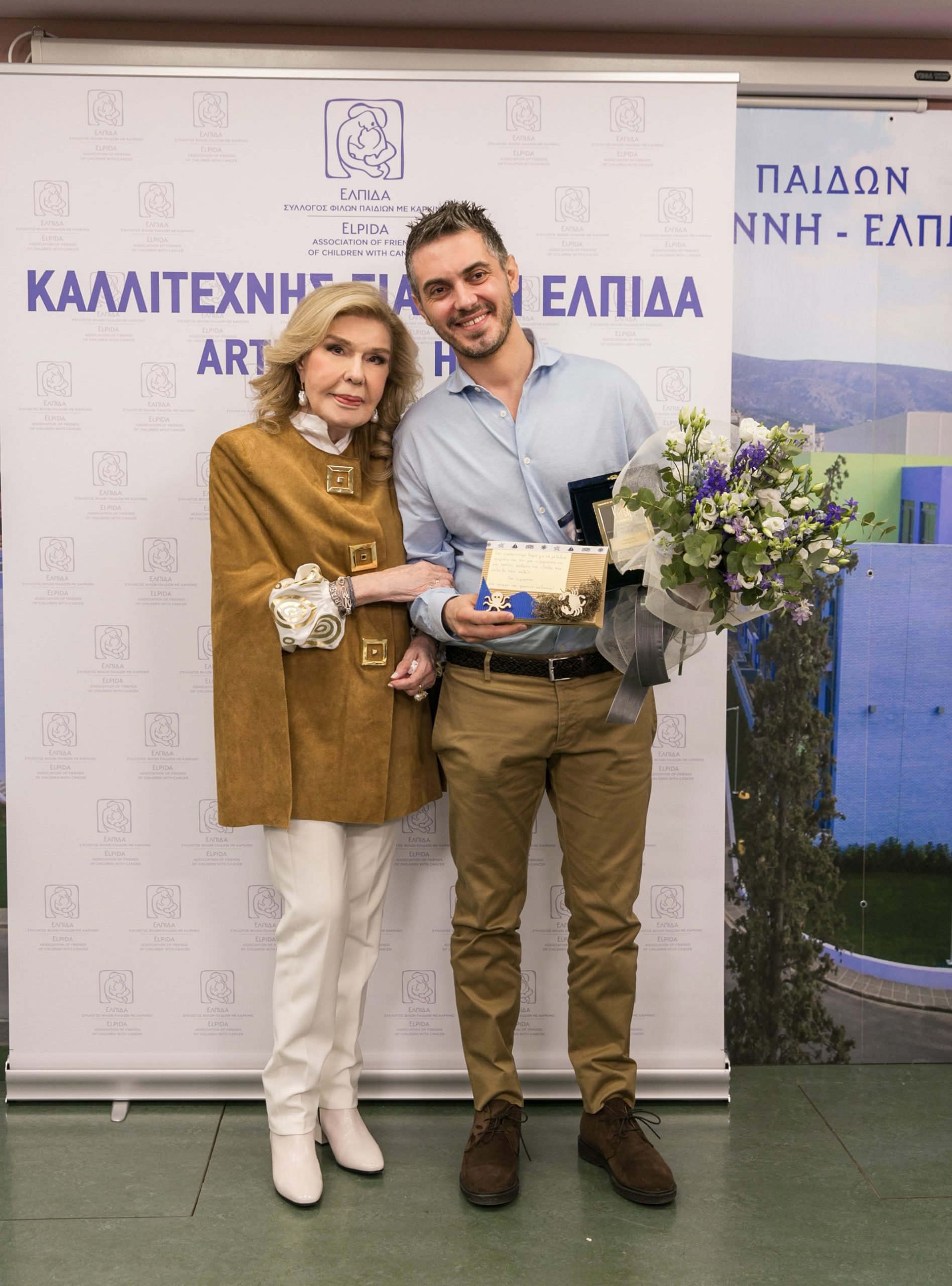 Αμέσως μετά, σε μία σεμνή τελετή, στην οποία έδωσαν το «παρών» ο Διοικητής του Νοσοκομείου Παίδων «Η ΑΓΙΑ ΣΟΦΙΑ» και «Π.&Α. ΚΥΡΙΑΚΟΥ» κύριος Μανώλης Παπασάββας, τα μέλη των Διοικητικών Συμβουλίων των Συλλόγων «ΕΛΠΙΔΑ» και «ΟΡΑΜΑ ΕΛΠΙΔΑΣ», γιατροί και νοσηλευτές, η κυρία Βαρδινογιάννη απένειμε στον Μιχάλη Χατζηγιάννη την Τιμητική Πλακέτα της «ΕΛΠΙΔΑΣ» και τον ανακήρυξε «Καλλιτέχνη για την ΕΛΠΙΔΑ 2019-2021».