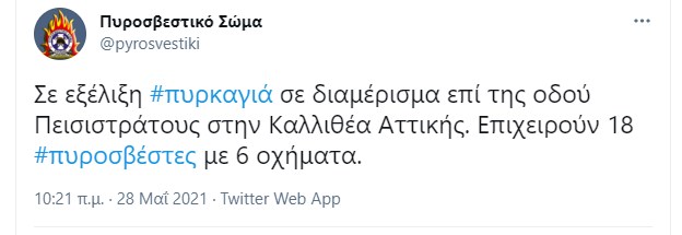 Φωτιά εκδηλώθηκε πριν από λίγη ώρα, σε διαμέρισμα 4ου ορόφου, στην οδό Πεισιστράτους, στην Καλλιθέα. Σύμφωνα με τις πρώτες πληροφορίες από την Πυροσβεστική, στο σημείο έσπευσαν και επιχειρούν 18 πυροσβέστες με 6 οχήματα, οι οποίοι απεγκλώβισαν τους ενοίκους από τα υπόλοιπα διαμερίσματα, οι οποίοι είχαν εγκλωβιστεί και δεν μπορούσαν να βγουν έξω λόγω των πυκνών καπνών.