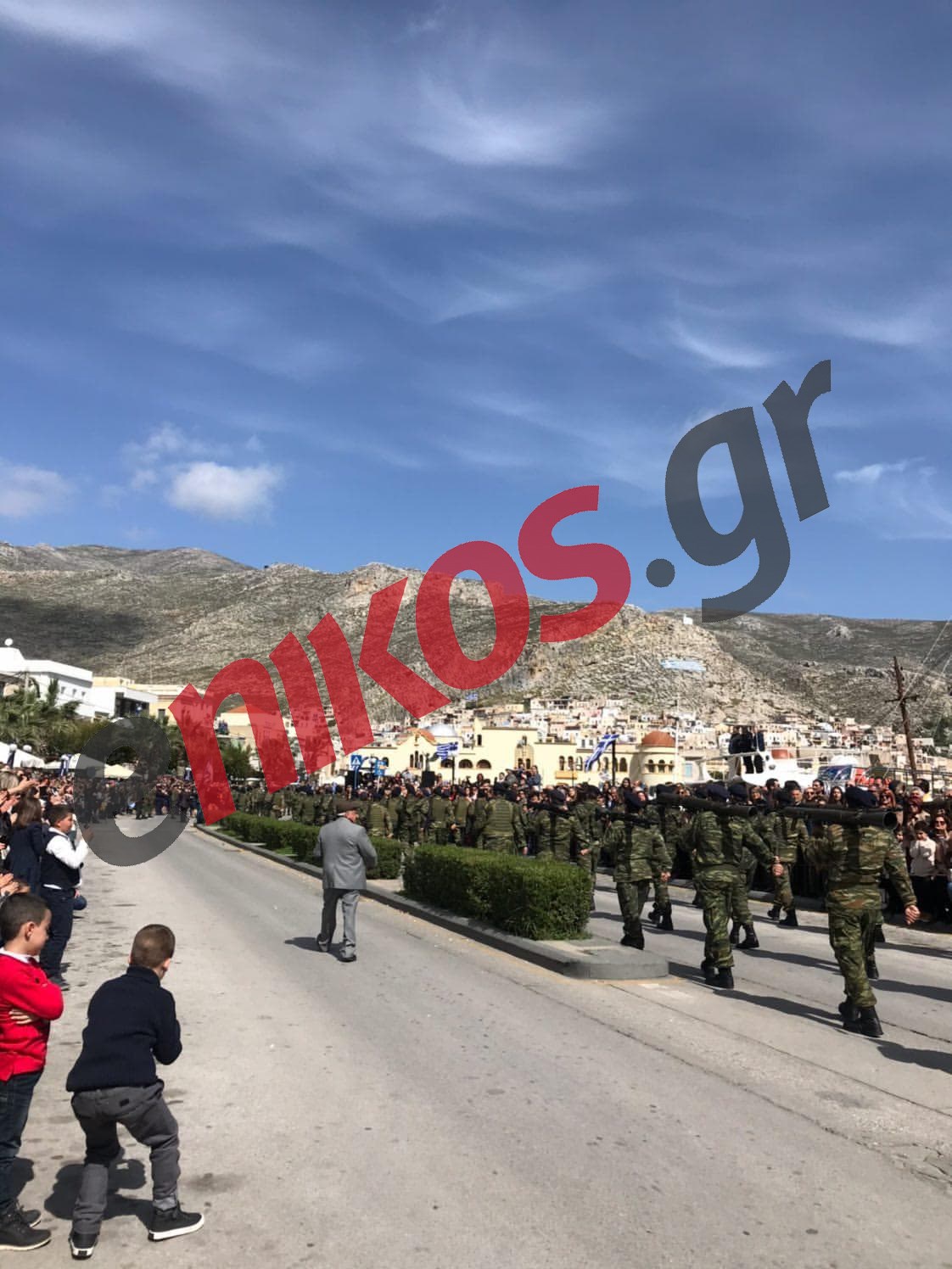 Η ανοιξιάτικη ημέρα έδωσε την ευκαιρία στον κόσμο του νησιού να κατακλύσει τον παραλιακό δρόμο προκειμένου να παρακολουθήσει την παρέλαση, με το άγημα Ευζώνων, τα στρατιωτικά τμήματα και τους Εθνοφύλακες να σκορπούν ρίγη συγκίνησης στο πέρασμα τους.