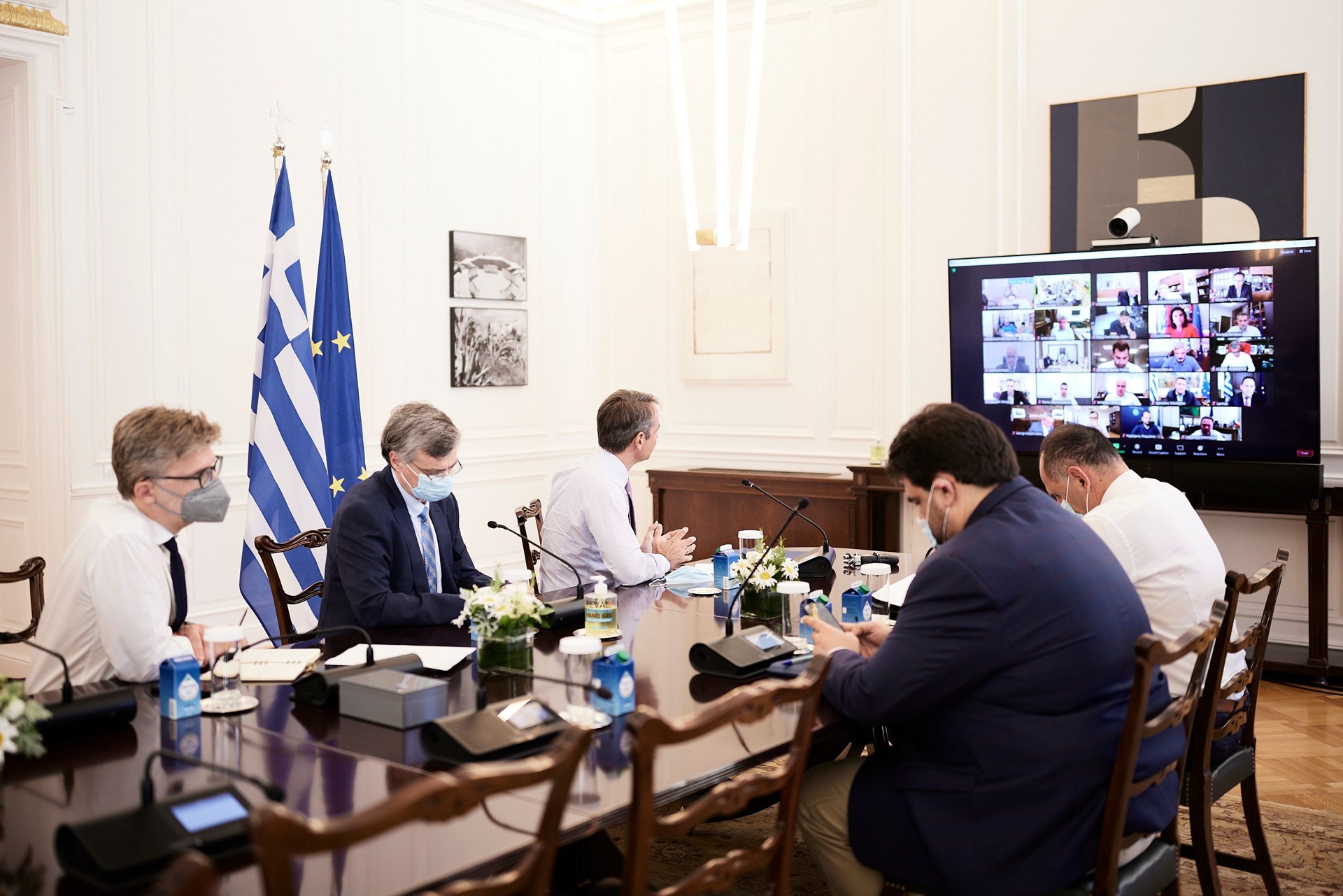 Κατά τη διάρκεια της σύσκεψης με τους εκπροσώπους της Ένωσης Περιφερειών Ελλάδας, της Κεντρικής Ένωσης Δήμων Ελλάδας και τις ηγεσίες των Υπουργείων Υγείας και Εσωτερικών με αντικείμενο τις εξελίξεις γύρω από την πανδημία και την πορεία των εμβολιασμών, ο Πρωθυπουργός χαρακτήρισε ως εξαιρετικά σημαντική τη συμβολή στην εμβολιαστική εκστρατεία και της τοπικής αυτοδιοίκησης, της Εκκλησίας και του επιχειρηματικού κόσμου. Είπε χαρακτηριστικά ότι “πρέπει να επιστρατεύσουμε κάθε μέσο, το οποίο έχουμε στη διάθεσή μας, έτσι ώστε το επόμενο δίμηνο του καλοκαιριού να πείσουμε κάθε πολίτη που πιθανόν να έχει δεύτερες σκέψεις, που πιθανόν να έχει φοβίες, να κάνει το εμβόλιο”. Στόχος, διευκρίνισε ο Κυριάκος Μητσοτάκης, είναι το τείχος ανοσίας, με ποσοστό πλήρως εμβολιασμένων 70-75% έως το τέλος του καλοκαιριού. Σύμφωνα με τα στοιχεία που γνωστοποίησε, το 56% των ενηλίκων έχει πια κάνει μία δόση, ενώ σχεδόν το 47% είναι πλήρως εμβολιασμένοι. “Σε απόλυτα νούμερα 5 εκατομμύρια συμπολίτες μας, καλώς εχόντων των πραγμάτων, σήμερα θα έχουν κάνει τουλάχιστον μία δόση”, είπε ο κ. Μητσοτάκης.