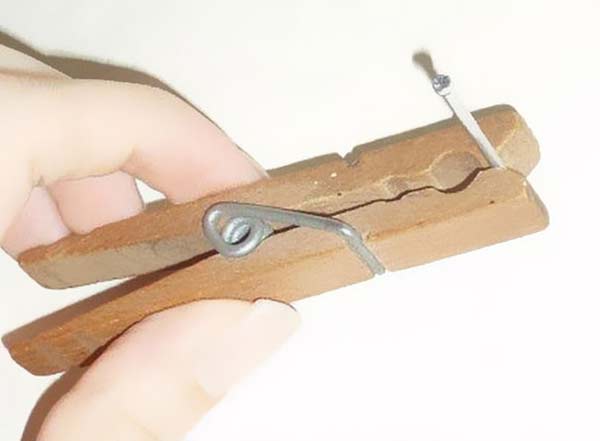 4. Κρατήστε την πρόκα με ένα μανταλάκι για να την καρφώσετε με το σφυρί στον τοίχο.