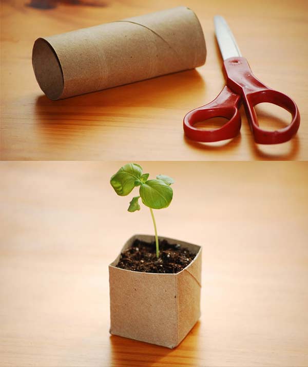6. Κόψτε το ρολό από το χαρτί υγείας που τελείωσε και φτιάξτε γλαστράκια για τους σπόρους σας.