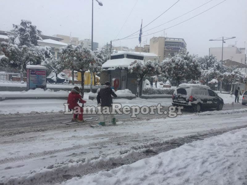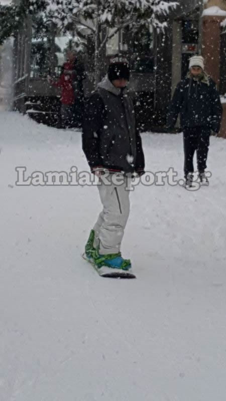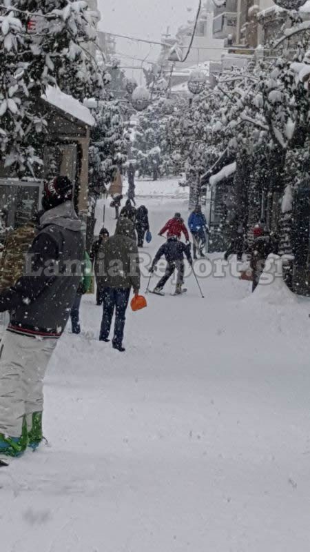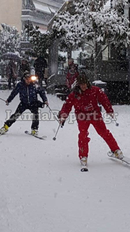 Κάποιοι κάτοικοι της Λαμίας αποφάσισαν να εκμεταλλευτούν τον χιονιά που έπληξε την πόλη τους, κάνοντας… σκι στους δρόμους!