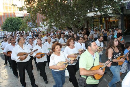 Ηράκλειο μιας άλλης εποχής θύμισε σήμερα το κέντρο της πόλης, που πλημμύρισε μουσικές και ήχους από την καντάδα 100 μαντολίνων στους δρόμους και τα σοκάκια της πόλης.
