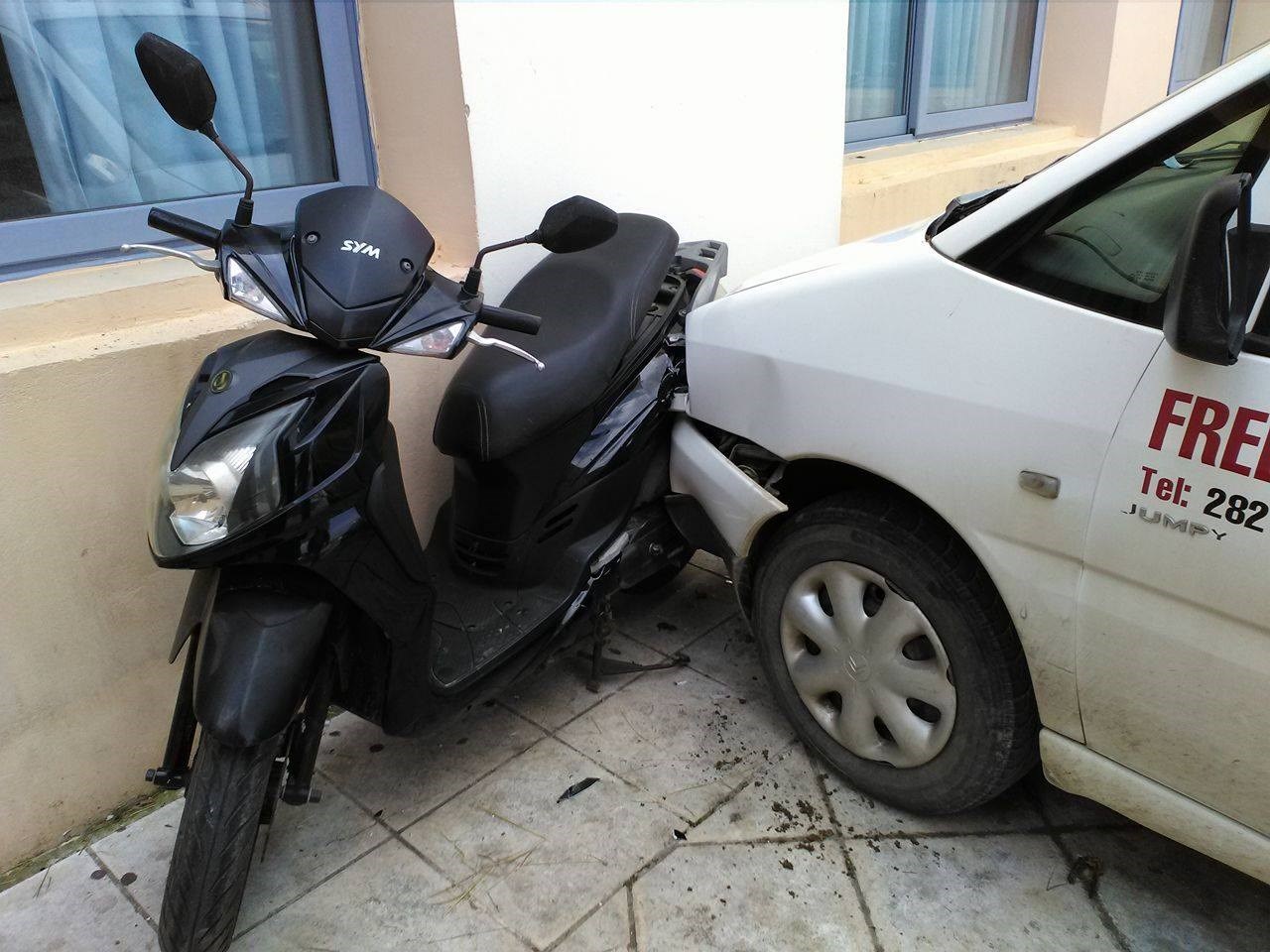 Καραμπόλα τριών οχημάτων σημειώθηκε το μεσημέρι της Τετάρτης στον προαύλιο χώρο του Νοσοκομείου Χανίων, όταν διερχόμενο ταξί έπεσε πάνω σε σταθμευμένο βαν με αποτέλεσμα τον ελαφρύ ευτυχώς τραυματισμό του οδηγού.Συγκεκριμένα, ο οδηγός ταξί υπό αδιευκρίνιστες συνθήκες, αλλά πιθανόν λόγω αδιαθεσίας που αισθάνθηκε, πάτησε γκάζι και προσέκρουσε στο εικονιζόμενο βαν, το οποίο ήταν σταθμευμένο πάνω στο πεζοδρόμιο, ακριβώς μπροστά από το κεντρικό κτίριο του Νοσοκομείου Χανίων. Στη συνέχεια, όπως περιέγραψε αυτόπτης μάρτυρας στο zarpanews.gr, το βαν προσέκρουσε σε μηχανάκι, το οποίο επίσης είχε παρκάρει πάνω στο πεζοδρόμιο.Δείτε τις φωτογραφίες: