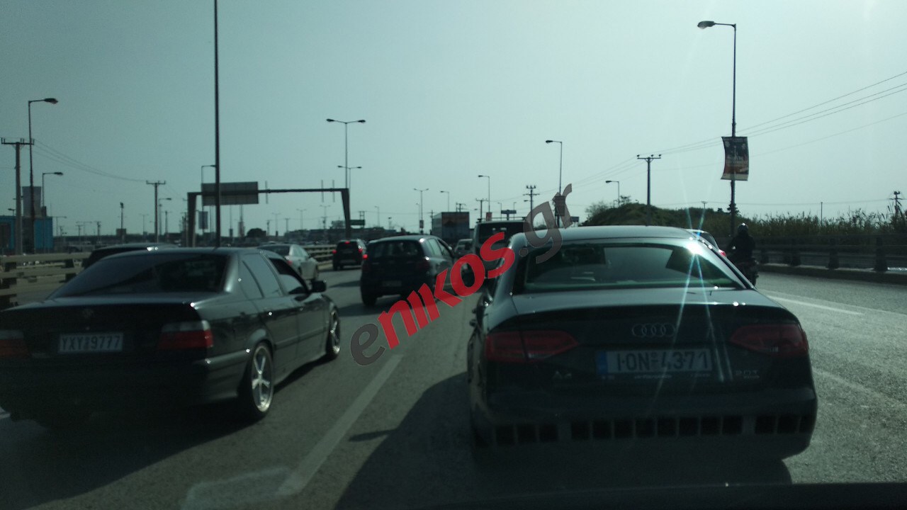 Όπως φαίνεται στις φωτογραφίες που μας έστειλε αναγνώστης του enikos.gr, σημειώθηκε καραμπόλα, στην οποία ενεπλάκη και ένα μίνι βαν.