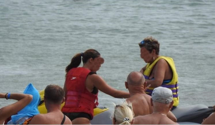 Για καλή τους τύχη, βρέθηκε μια κοπέλα, η βοήθεια της οποίας αποδείχθηκε σωτήρια. Η νεαρή κινήθηκε άμεσα και με γρήγορες κινήσεις έριξε στη θάλασσα το τζετ σκι από την επιχείρηση του πατέρα της, η οποία ήταν κλειστή λόγω καιρικών συνθηκών. Μέσα σε λίγα λεπτά κατάφερε να βγάλει σώα την τουρίστρια, η οποία είχε υποστεί ισχυρό σοκ.