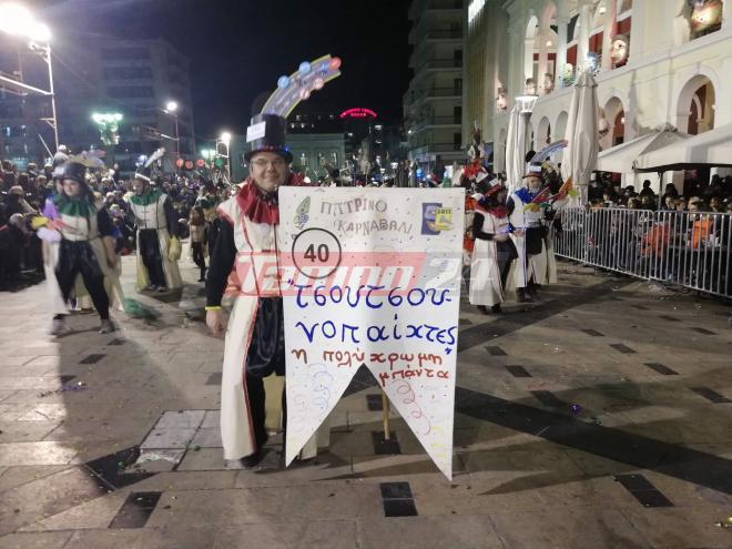 Περισσότεροι από 40.000 νέες και νέοι της Πάτρας, που αποτελούν κάθε χρόνο την «ψυχή» του πατρινού καρναβαλιού, πήραν μέρος στην νυχτερινή ποδαράτη παρέλαση, η οποία χαρακτηρίζεται, ως η πιο μεγάλη νύχτα της καρναβαλικής Πάτρας.