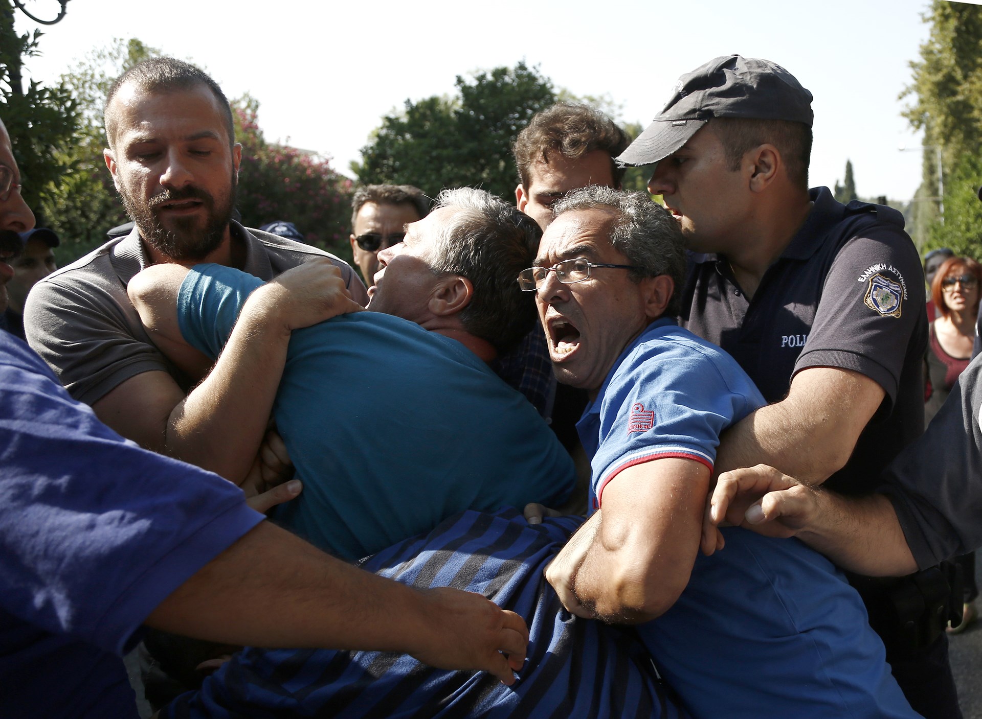 Ένταση σημειώθηκε νωρίτερα έξω από το Μέγαρο Μαξίμου, λίγο πριν από την προγραμματισμένη συνάντηση εκπροσώπων της ΠΟΕ-ΟΤΑ με τον Πρωθυπουργό Αλέξη Τσίπρα.