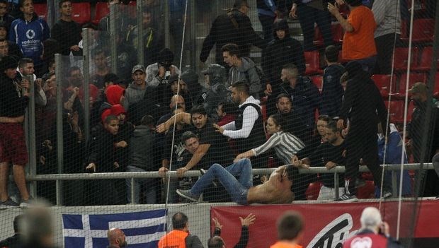 Σοκάρουν οι εικόνες από τον άγριο ξυλοδαρμό του οπαδού που πήγε στον αγώνα της ΕθνικήςΕλλάδος με το Γιβραλτάρ φορώντας φανέλα του Παναθηναϊκού.