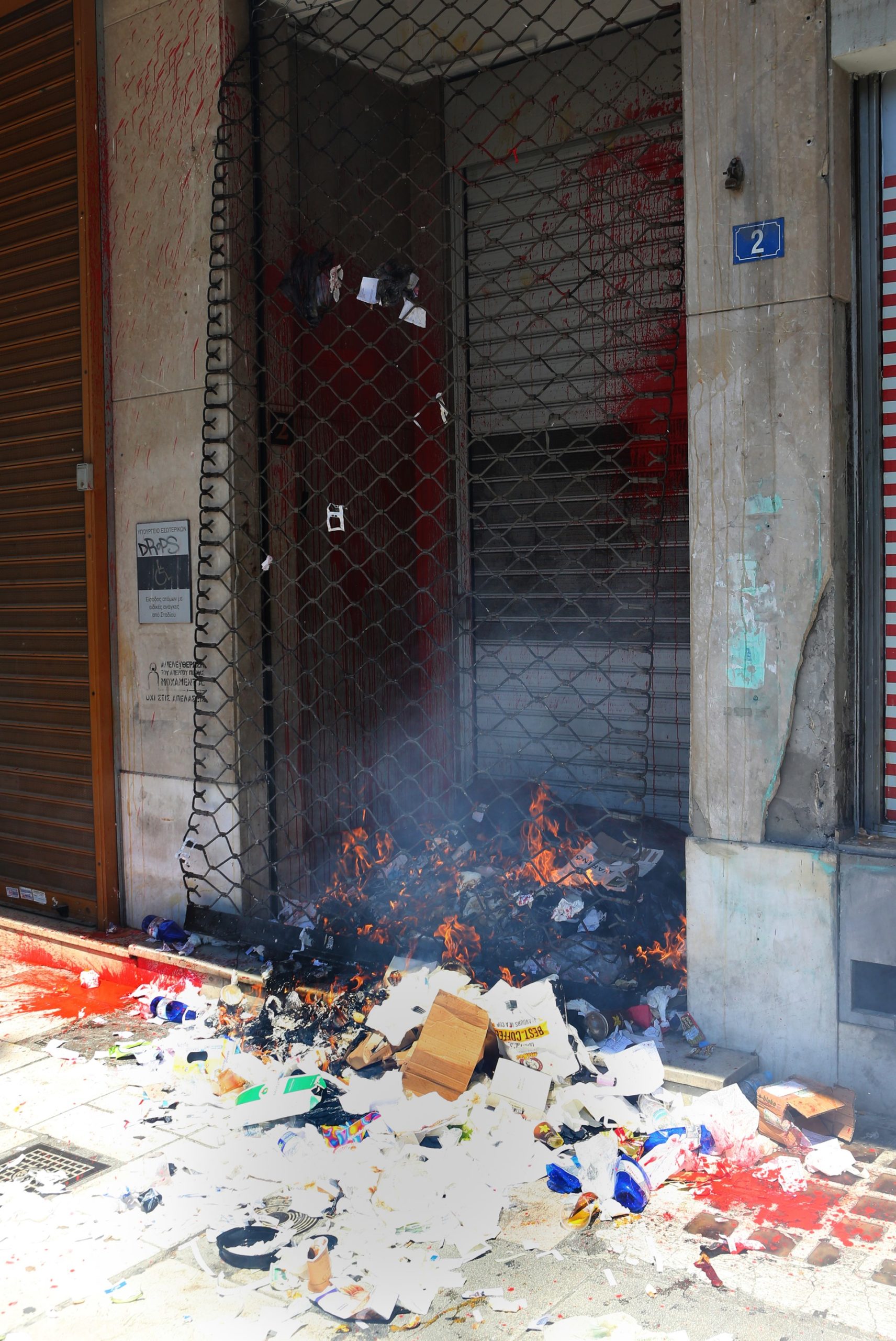 Νωρίτερα, επικράτησε μεγάλη ένταση έξω από το υπουργείο Εσωτερικών με τους εργαζόμενους της ΠΟΕ-ΟΤΑ να πετούν σκουπίδια και να τραβούν με δύναμη τα συρματοπλέγματα μπροστά από την είσοδο, ενώ έβαλαν και φωτιά.