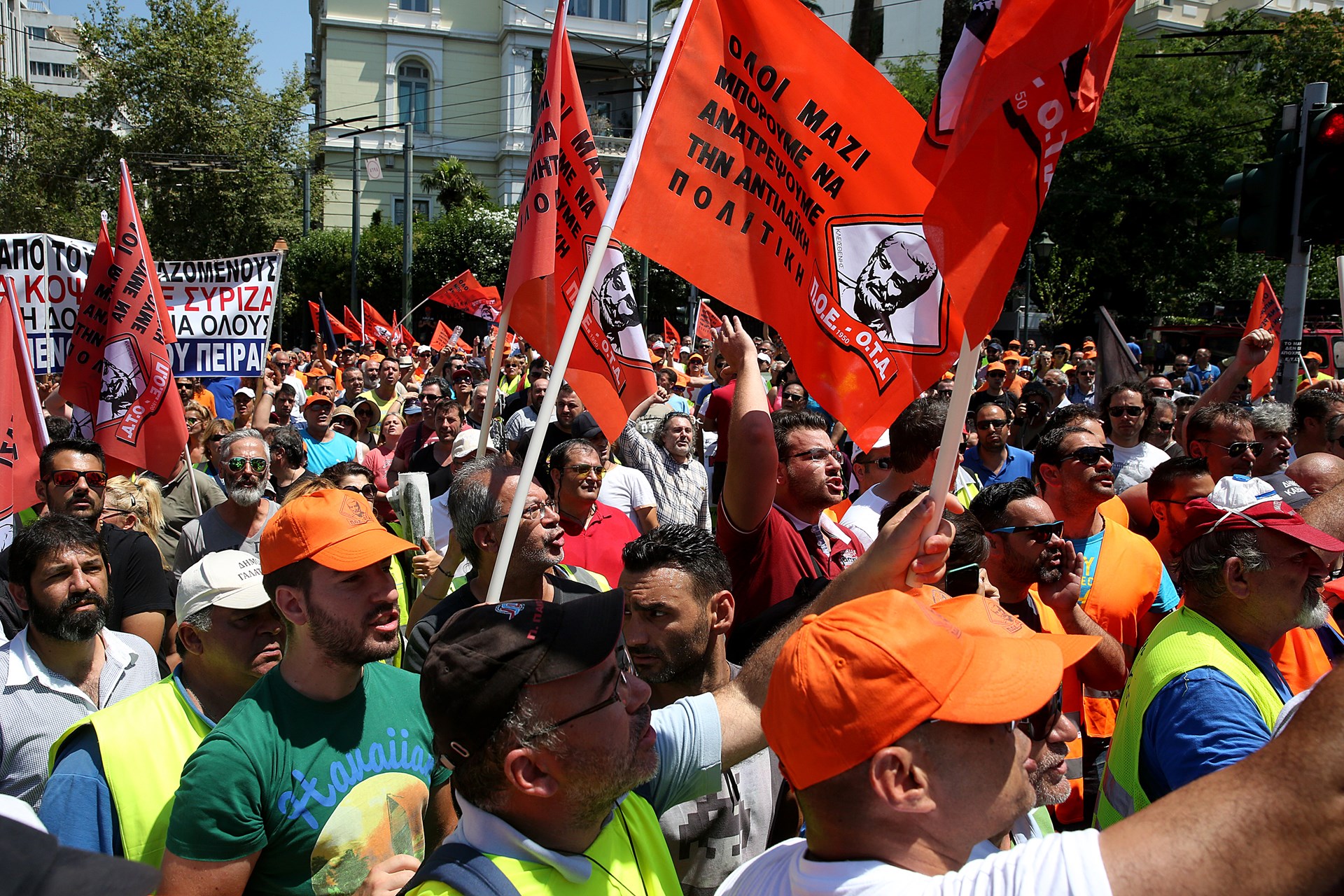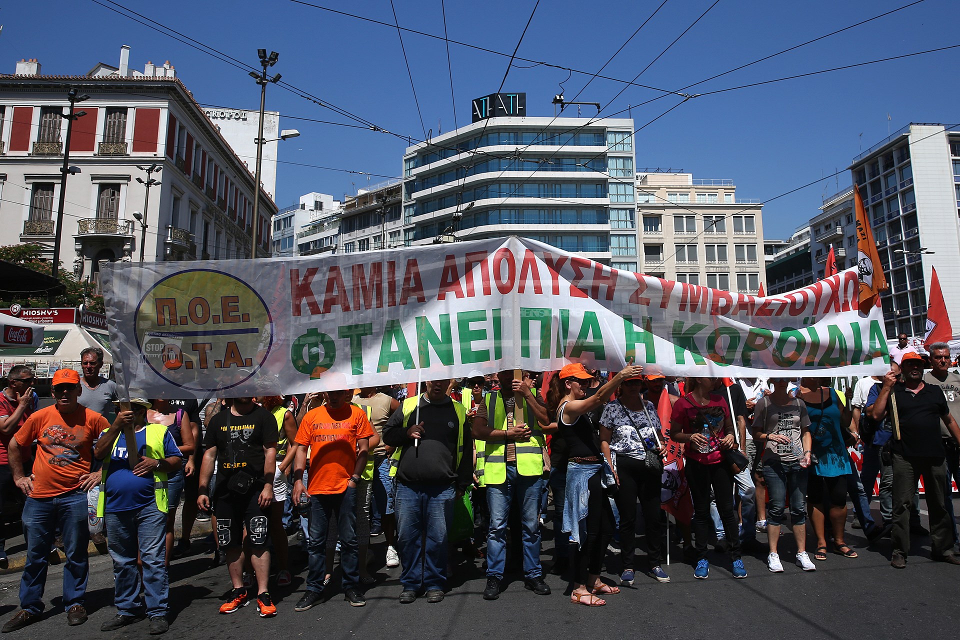 Στη συνέχεια, οι εργαζόμενοι της ΠΟΕ-ΟΤΑ χτυπούσαν με δύναμη τα κατεβασμένα ρολά του υπουργείου ωστόσο απωθήθηκαν από τους άνδρες της Αστυνομίας και συνέχισαν την πορεία τους.