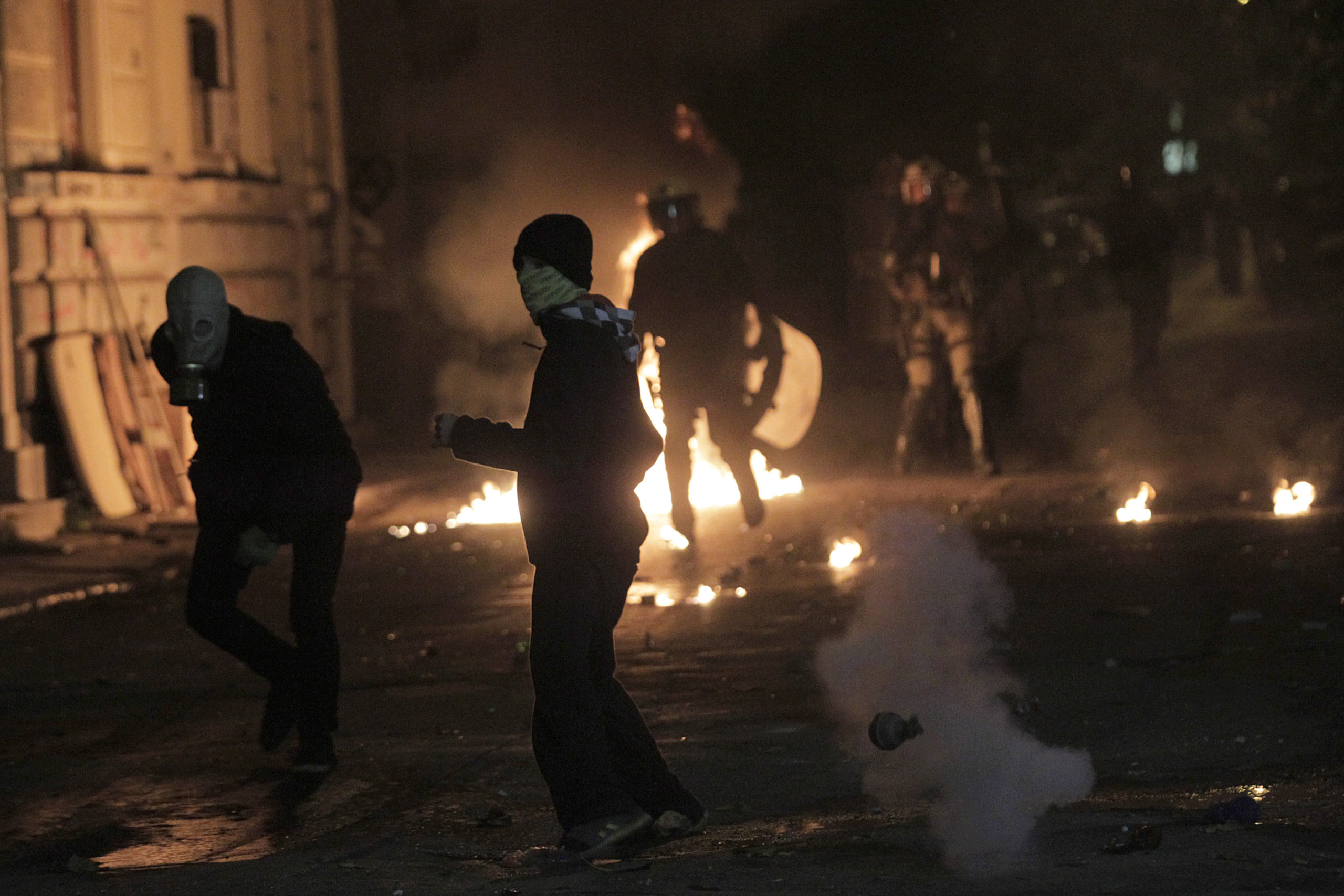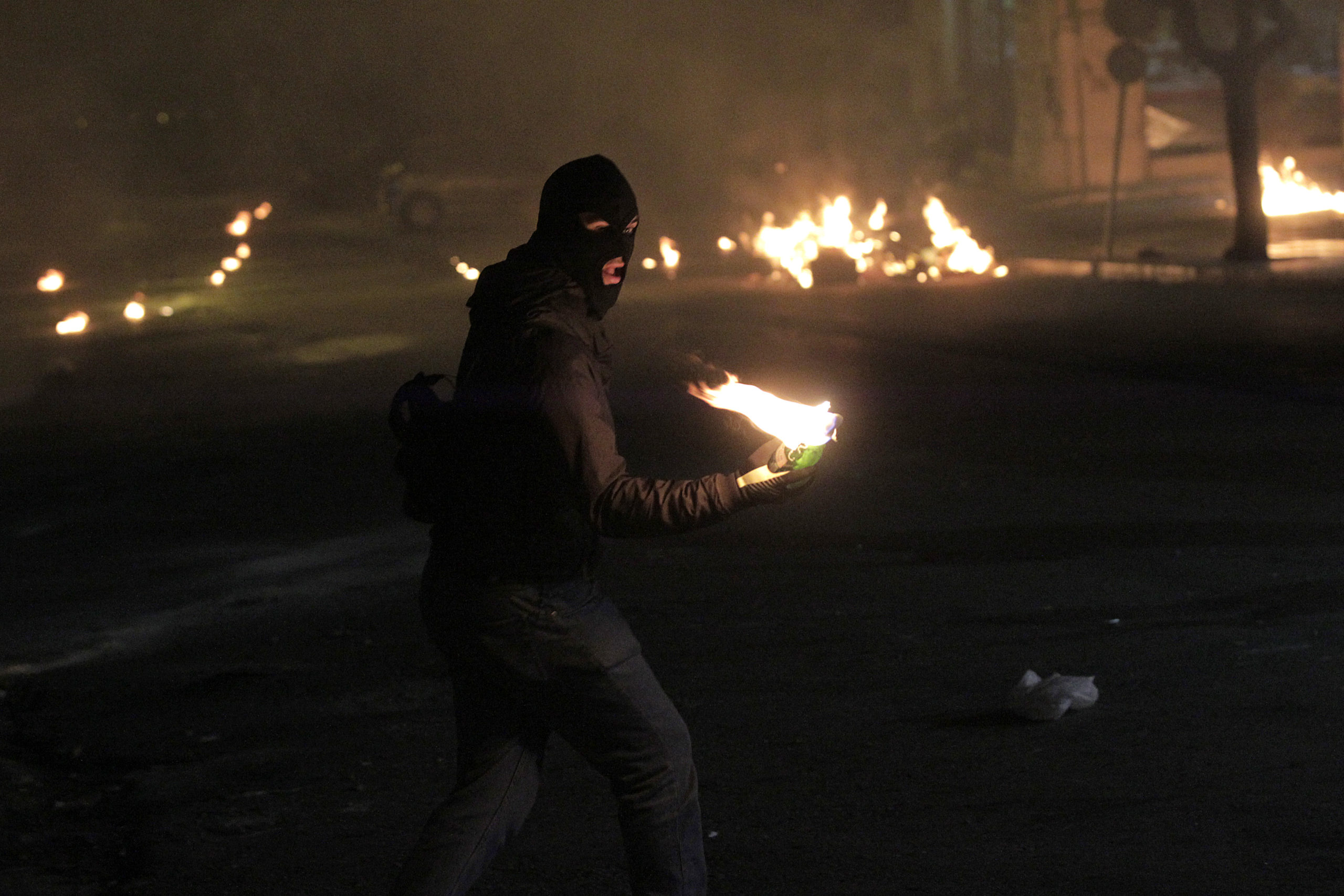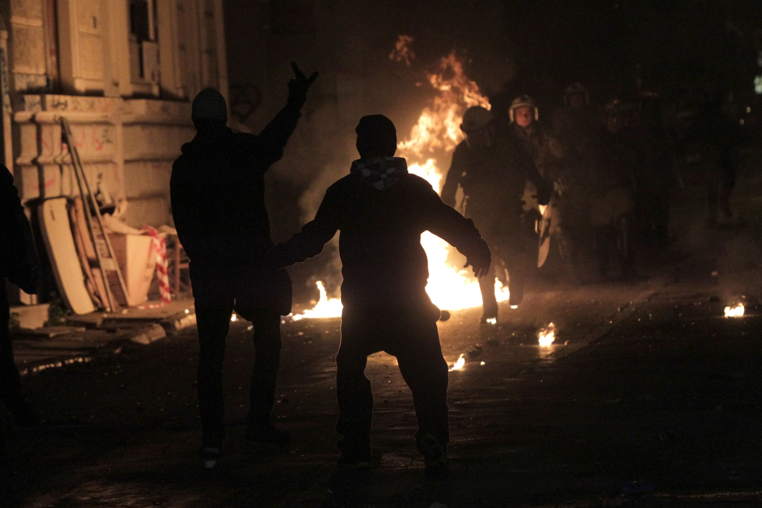 Οι αντιεξουσιαστές συνεχίζουν να ρίχνουν μολότοφ και πέτρες στις διμοιρίες των ΜΑΤ, αλλά και να βάζουν φωτιές σε κάδους απορριμμάτων, ενώ τις τελευταίες ώρες η περιοχή των Εξαρχείων θυμίζει «πεδίο μάχης».