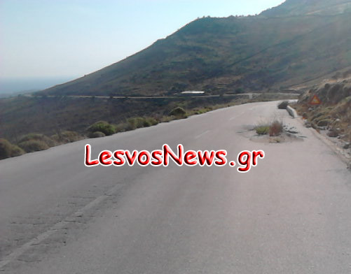 Η συγκεκριμένη φωτογραφία προέρχεται από το δρόμο Καλλονής – Ερεσού, λίγο μετά την Άγρα στη Λέσβο.Όπως φαίνεται η μία λωρίδα του δρόμου στο συγκεκριμένο σημείο έχει κλείσει, καθώς η άσφαλτος έχει σκάσει και διάφορα φυτά έχουν βγει στην επιφάνεια.