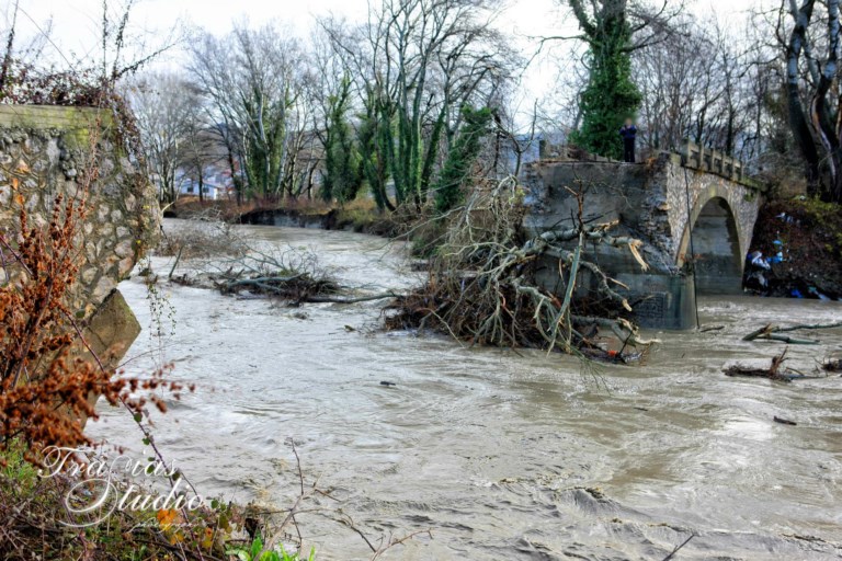 Η νεροποντή προκάλεσε άνοδο της στάθμης του νερού, και με τα ρεύματα που αναπτύχθηκαν μεγάλο μέρος του λιθόκτιστου γεφυριού γκρεμίστηκε.