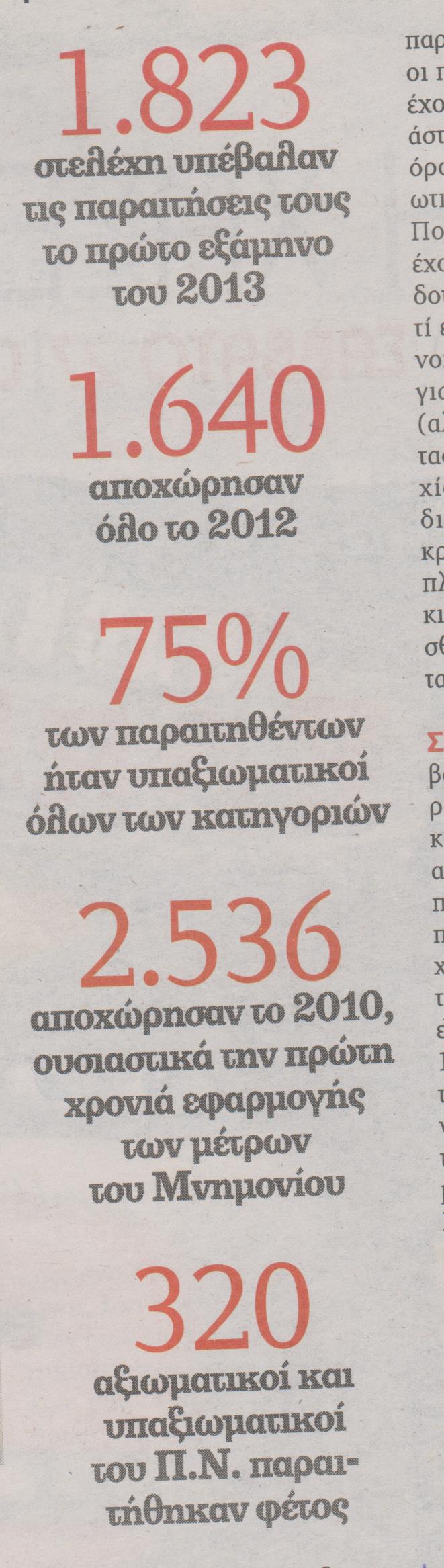 Ενδεικτικά, μέχρι την 1/7/2013, είχαν παραιτηθεί: