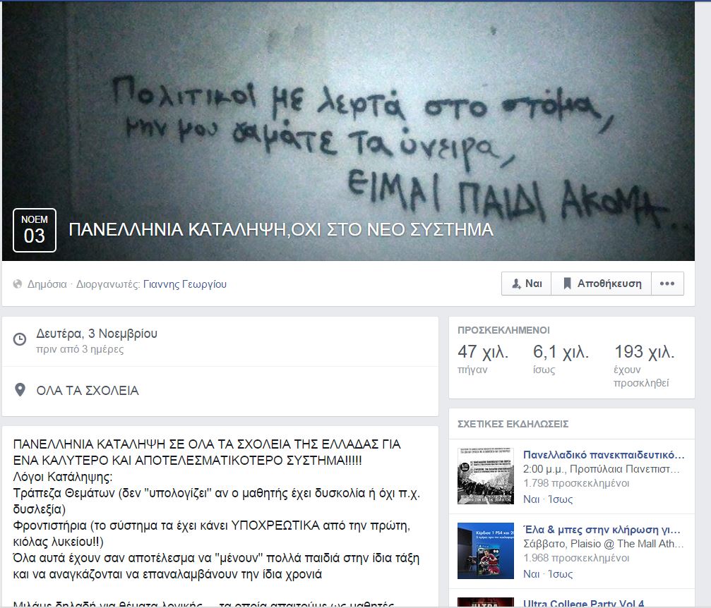 Καταλήψεις-Εισαγγελική παρέμβαση για αυτή τη σελίδα στο facebook
