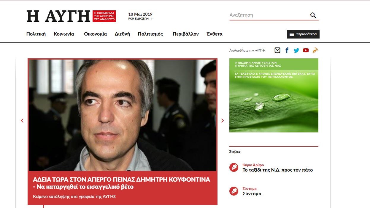 Κατάληψη πραγματοποιείται στα γραφεία της εφημερίδας «Αυγή», διαμαρτυρόμενη για την απόρριψη της άδειας του Δημήτρη Κουφοντίνα.