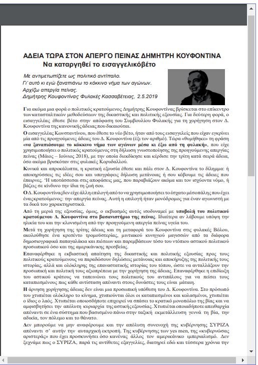 Η ομάδα των ατόμων υποχρέωσε την συντακτική ομάδα της ιστοσελίδας aygi.gr, να ανεβάσουν και κείμενο για τον Κουφοντίνα.Δείτε την ανάρτηση: