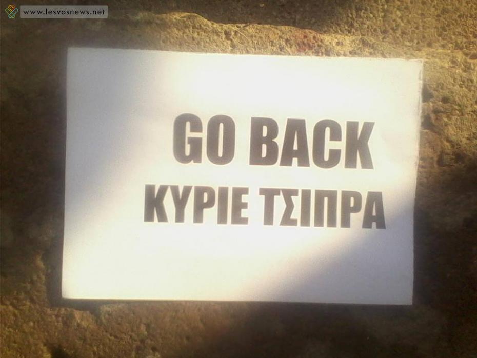 Σύμφωνα με το lesvosnews.net, οι διαδηλωτές, κατά τη διάρκεια της κατάληψης, πέταξαν φέιγ βολάν με διάφορα συνθήματα, όπως «Go back κύριε Τσίπρα».