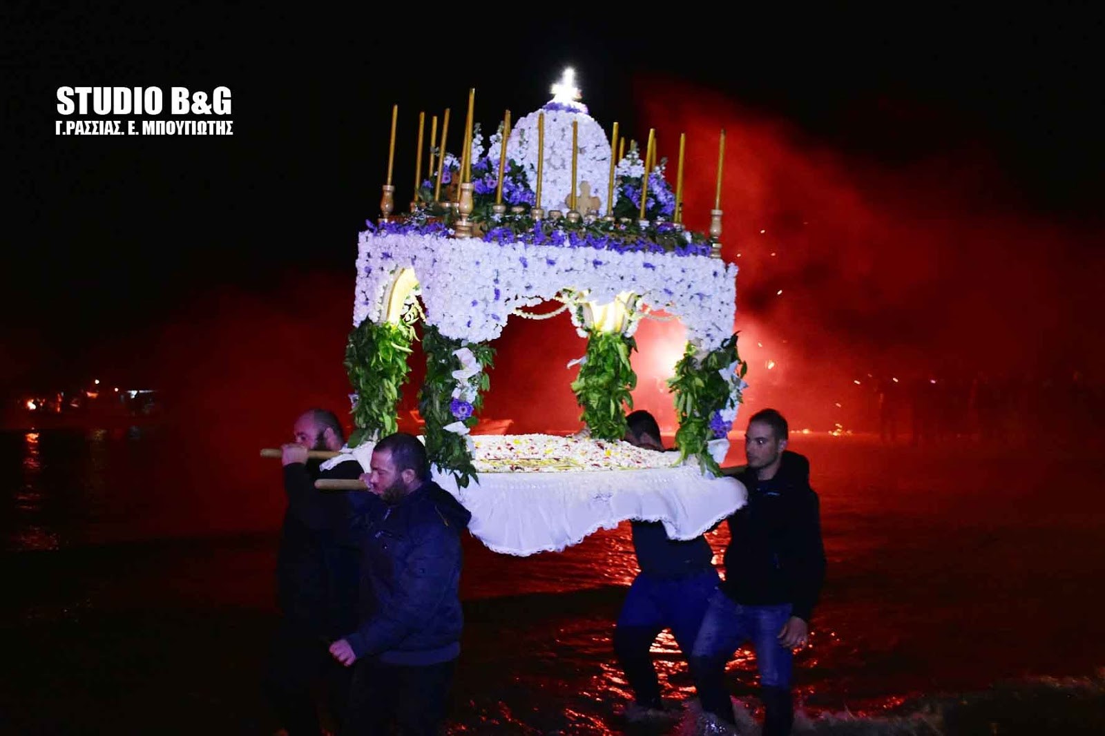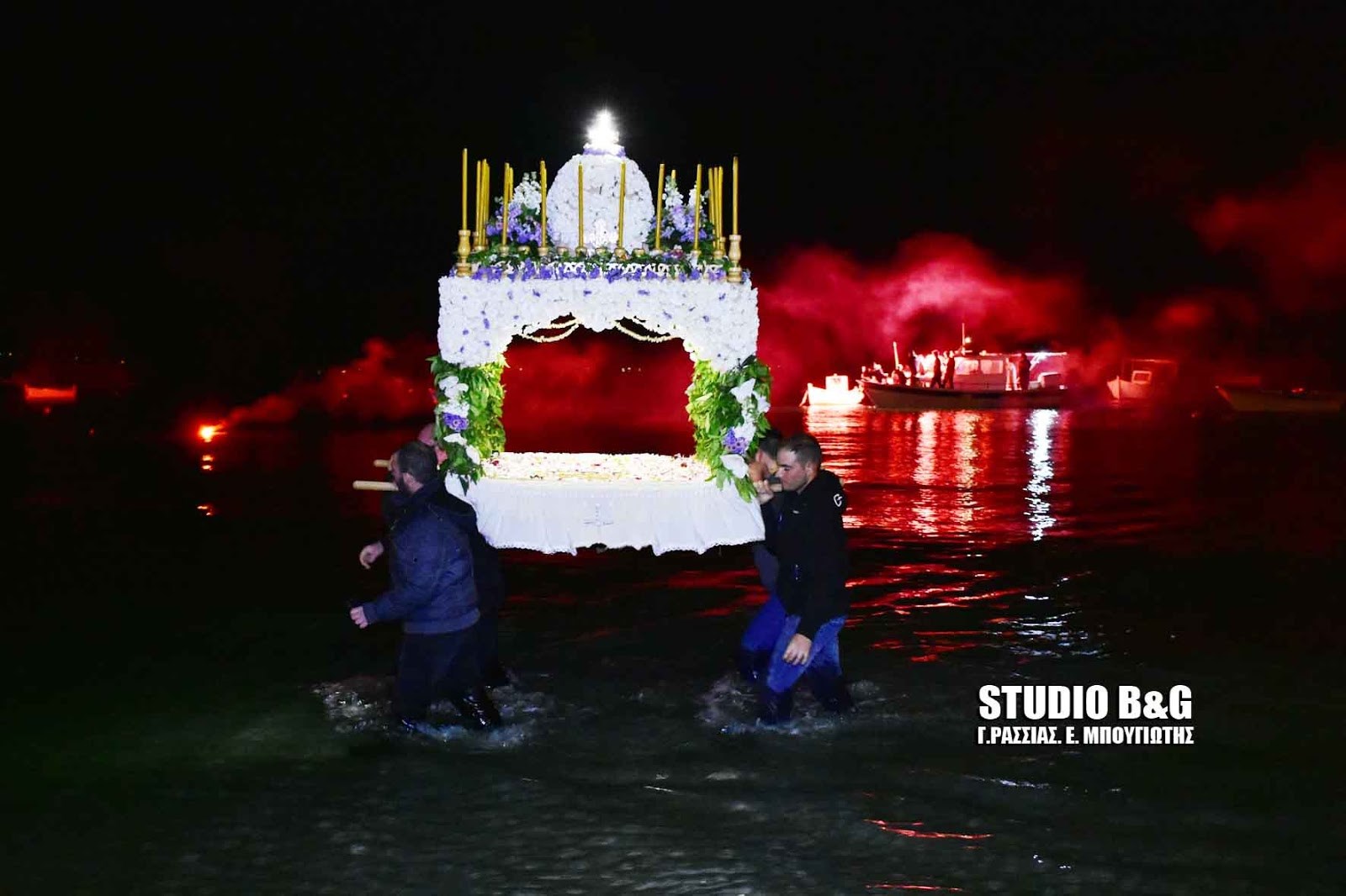 Κατανυκτική ατμόσφαιρα στο Τολό Αργολίδας κατά την περιφορά του Επιταφίου μέσα στη θάλασσα – ΒΙΝΤΕΟ