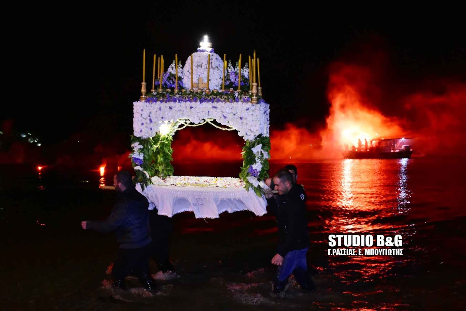 Κατανυκτική ατμόσφαιρα στο Τολό Αργολίδας κατά την περιφορά του Επιταφίου μέσα στη θάλασσα – ΒΙΝΤΕΟ