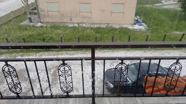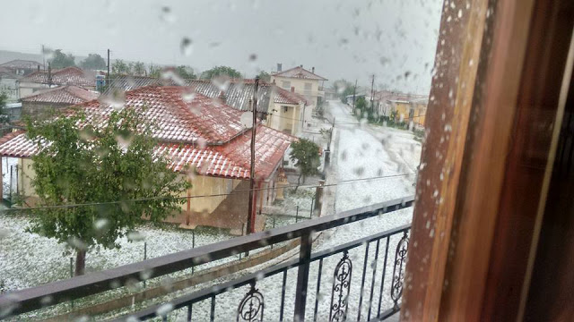 Στα λευκά ντύθηκε ο βόρειος Έβρος μετά την σφοδρή χαλαζόπτωση που έπληξε την περιοχή από νωρίς το μεσημέρι της Κυριακής .