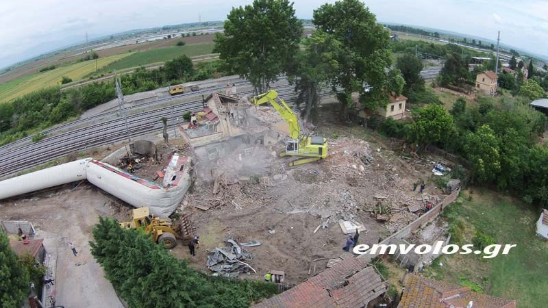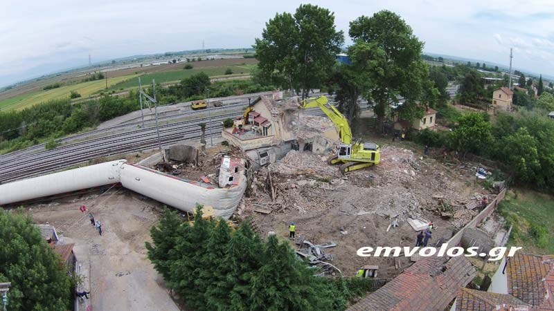 Ξεκίνησε σήμερα από τεχνικό συνεργείο του ΟΣΕ η διαδικασία κατεδάφισης του επάνω ορόφου του παλαιού κτιρίου, στο ισόγειο του οποίου έχει εγκλωβιστεί η πρόσθια μηχανή της μοιραίας αμαξοστοιχίας, στο Άδενδρο, λίγο έξω από τη Θεσσαλονίκη.