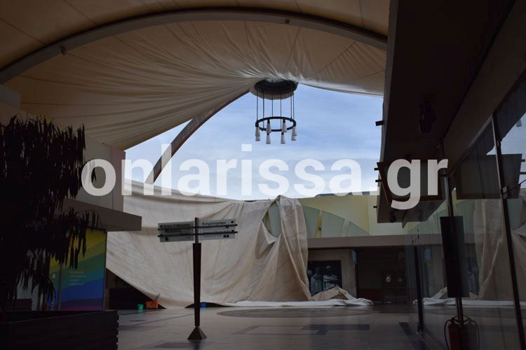 Η έντονη χιονόπτωση που έπληξε τη Λάρισα τις τελευταίες ημέρες, είχε ως αποτέλεσμα να καταρρεύσει η οροφή του εμπορικού κέντρου Pantheon Plaza.