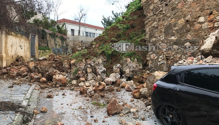 Μάλιστα τμήμα του, έπεσε πάνω σε αυτοκίνητο που ήταν σταθμευμένο εκεί, ενώ έκλεισε και η παρακείμενη οδός.