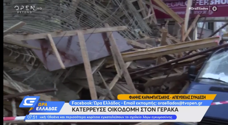 Η οικοδομή στη Λεωφόρο Μαραθώνος, ήταν στη φάση σκυροδέτησης και όπως φαίνεται στα πλάνα προκλήθηκαν ζημιές και σε παρακείμενα αυτοκίνητα. Ευτυχώς δεν τραυματίστηκε κάποιος εργάτης ή κάποιος περαστικός.