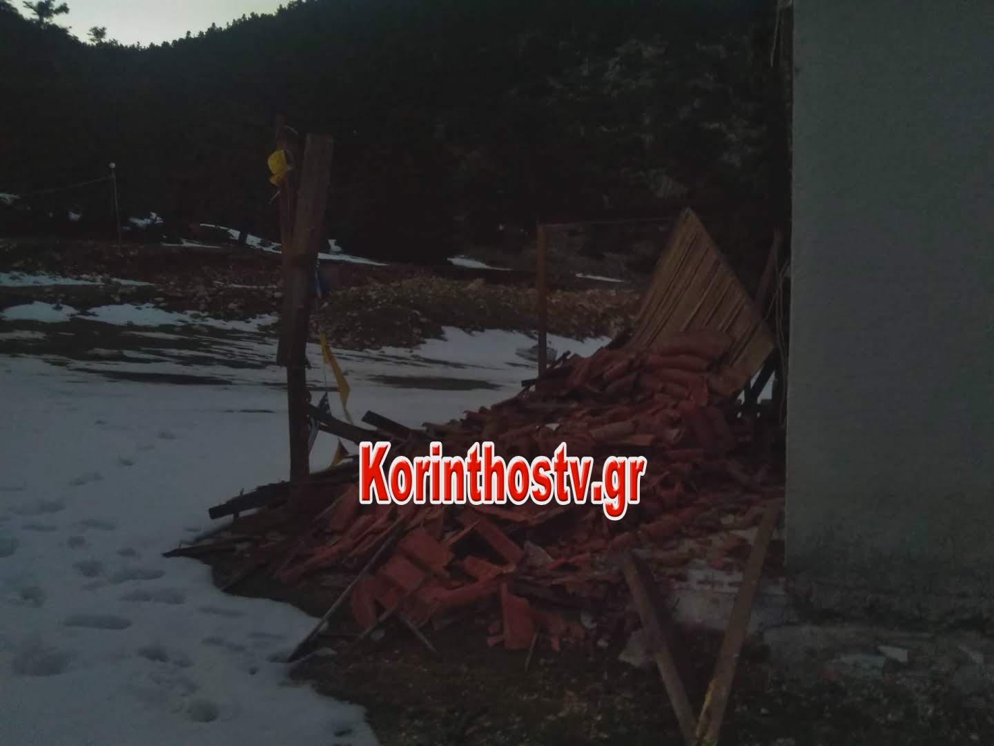 Όπως θα δείτε στις φωτογραφίες που εξασφάλισε το korinthostv, το υπόστεγο έχει υποχωρήσει εντελώς και η ζημιά είναι μεγάλη.