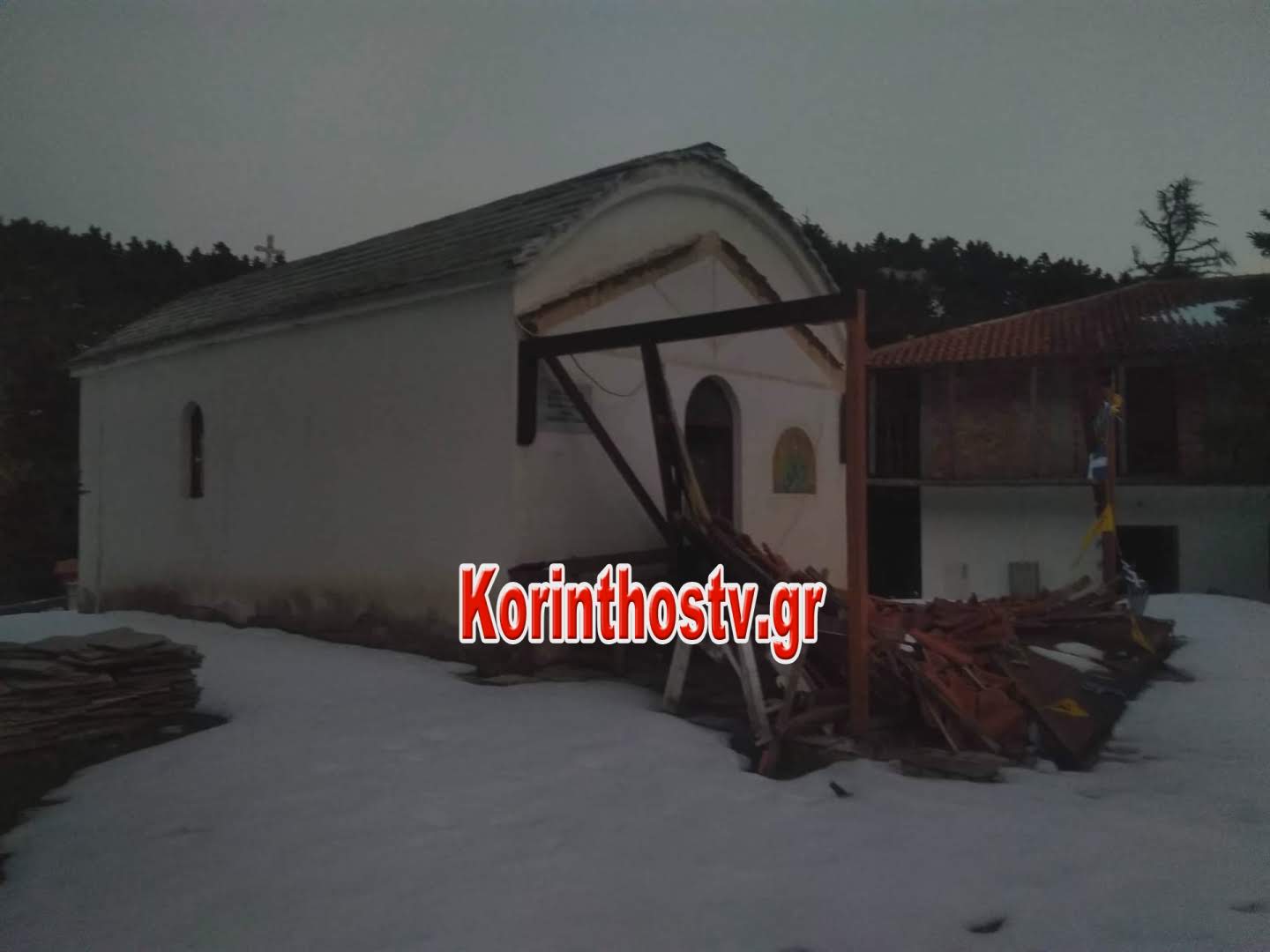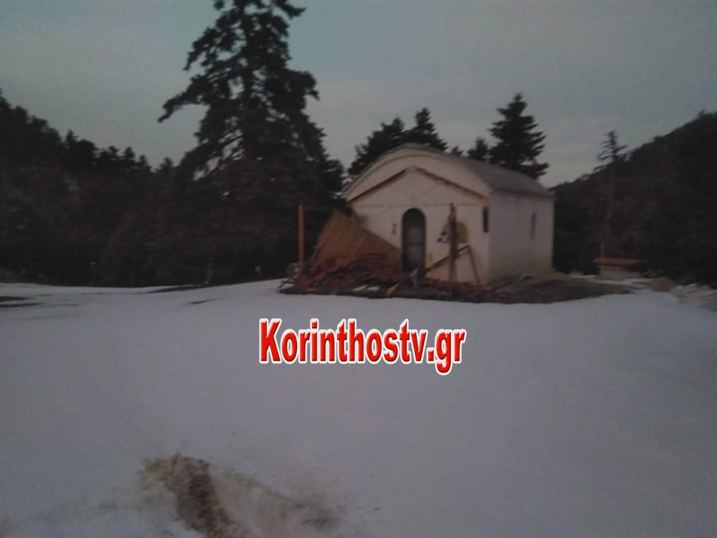Κατέρρευσε, λόγω της κακοκαιρίας και των σφοδρών χιονοπτώσεων που έπληξαν την περιοχή, το υπόστεγο στην είσοδο της εκκλησίας της Αγίας Παρασκευής στο “Φαρμακά” Γυμνό του δήμου Άργους -Μυκηνών.
