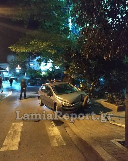 Το αυτοκίνητο της φωτογραφίας, στην έξοδο του από την πλατεία για την οδό Διάκου, πήγε ευθεία, ανεβαίνοντας στο πεζοδρόμιο και σταματώντας πάνω στο δέντρο δίπλα από την πέτρινη βρύση.