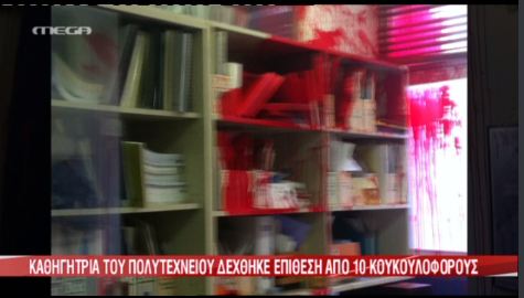 Μία ομάδα δέκα κουκουλοφόρων εισέβαλε το απόγευμα στο γραφείο καθηγήτριας στο τμήμα Χημικών Μηχανικών του Μετσόβιου Πολυτεχνείου.