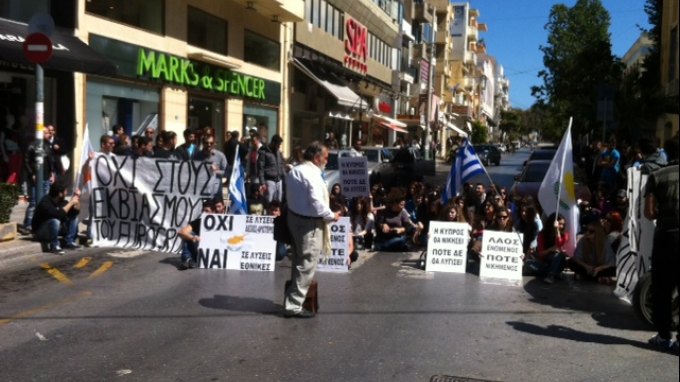 Συγκέντρωση διαμαρτυρίας έξω από το Γερμανικό Προξενείο Ηρακλείου πραγματοποιήθηκε από τους Κύπριους φοιτητές του Ηρακλείου με αφορμή τις δραματικές εξελίξεις στην Κύπρο.