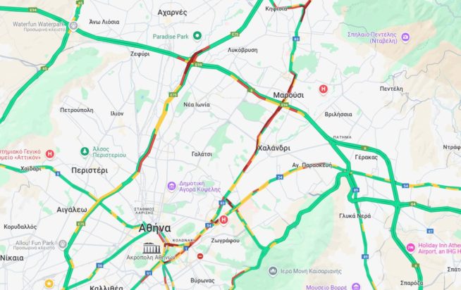 Συγκεκριμένα, οι καθυστερήσεις που σημειώνονται είναι 5-10 λεπτά από τον κόμβο Ηρακλείου έως τον κόμβο Πεντέλης, στο ρεύμα προς αεροδρόμιο. Καθυστερήσεις 5-10 λεπτών καταγράφονται ακόμα στο ρεύμα προς Ελευσίνα, τόσο στην έξοδο για Λαμία, όσο και στην έξοδο για Πειραιά.