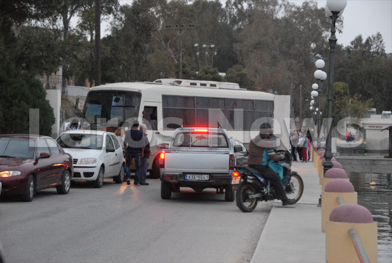 Ομάδα κατοίκων του νησιού, ύστερα και από σχετική απόφαση του δημοτικού συμβουλίου, έσπευσε στο λιμάνι για να εμποδίσει την αποβίβαση, με αποτέλεσμα το πλοίο να χρειαστεί να προσεγγίσει σε άλλη πλευρά του λιμανιού.