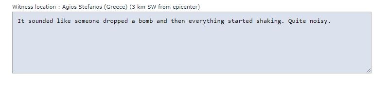 «Ακούστηκε ένας θόρυβος σαν κάποιος να πέταξε μία βόμβα και μετά όλα άρχισαν να κουνιούνται», έγραψε ένας κάτοικος από τον Άγιο Στέφανο στην μαρτυρία του στο Ευρωμεσογειακό Ινστιτούτο για τον σεισμό που ταρακούνησε λίγο μετά τις δέκα το βράδυ την Αττική.