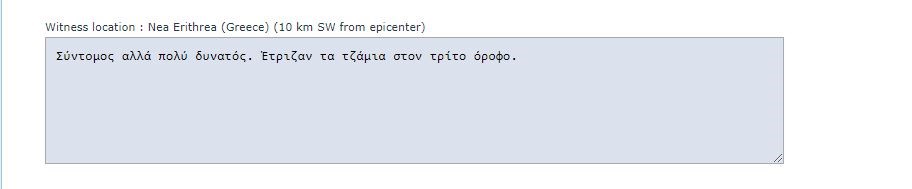Για το πώς ένιωσαν τον ισχυρό σεισμό που ταρακούνησε πριν από λίγο την Αττική κατέθεσαν τις μαρτυρίες τους στην ιστοσελίδα του Ευρωμεσογειακού Ινστιτούτου κάτοικοι που βρέθηκαν κοντά στο επίκεντρο της δόνησης.